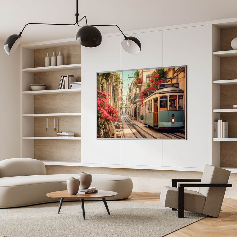 - Artistic Depictions of Service Vehicles: The vintage tram, with its pastel colors and elegant design, adds a touch of Mediterranean elegance to any room.