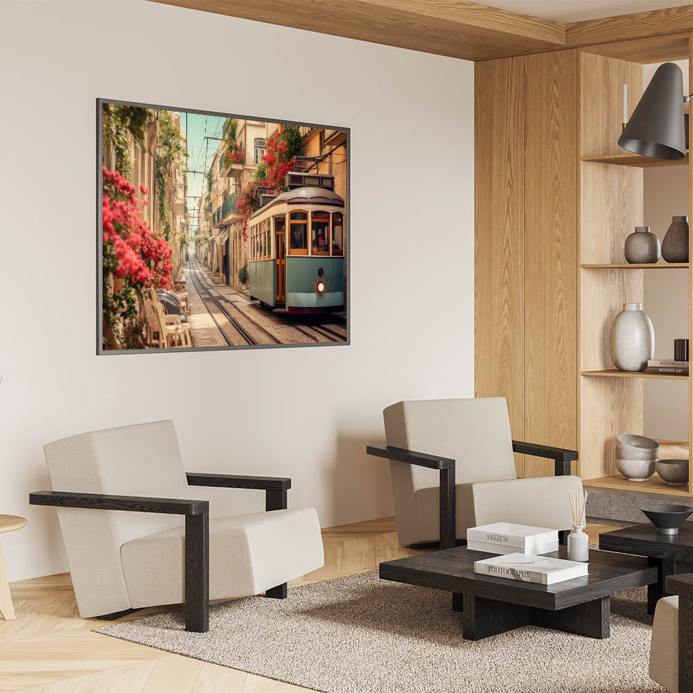 Bring the warmth and charm of a Mediterranean street into your home with this delightful service vehicles wall art featuring a vintage tram navigating through a sunlit, flower-lined alley. This artwork captures the essence of leisurely afternoons and timeless beauty, with vibrant colors and intricate details that evoke a sense of peace and nostalgia. The serene setting and classic tram make this piece a perfect addition for those who appreciate the romance of travel and the allure of historic streetscapes.