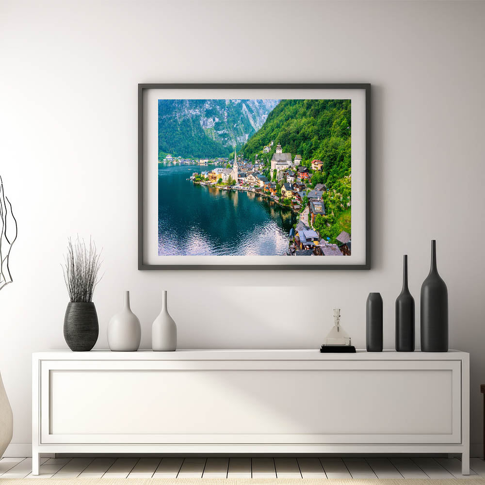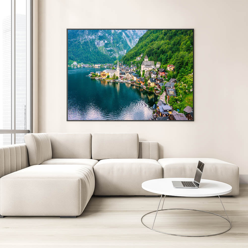Transform your living space with our exquisite village landscape painting that captures the serene beauty of a quaint countryside. This Charming Village Scenery artwork showcases a peaceful village nestled by a tranquil lake, surrounded by lush green hills. The vivid colors and intricate details bring this idyllic village scene to life, offering a sense of calm and tranquility to any room.