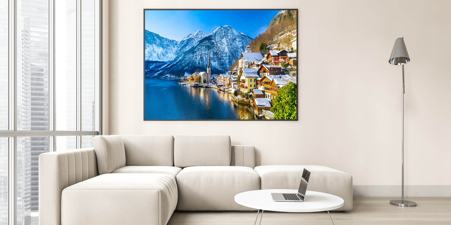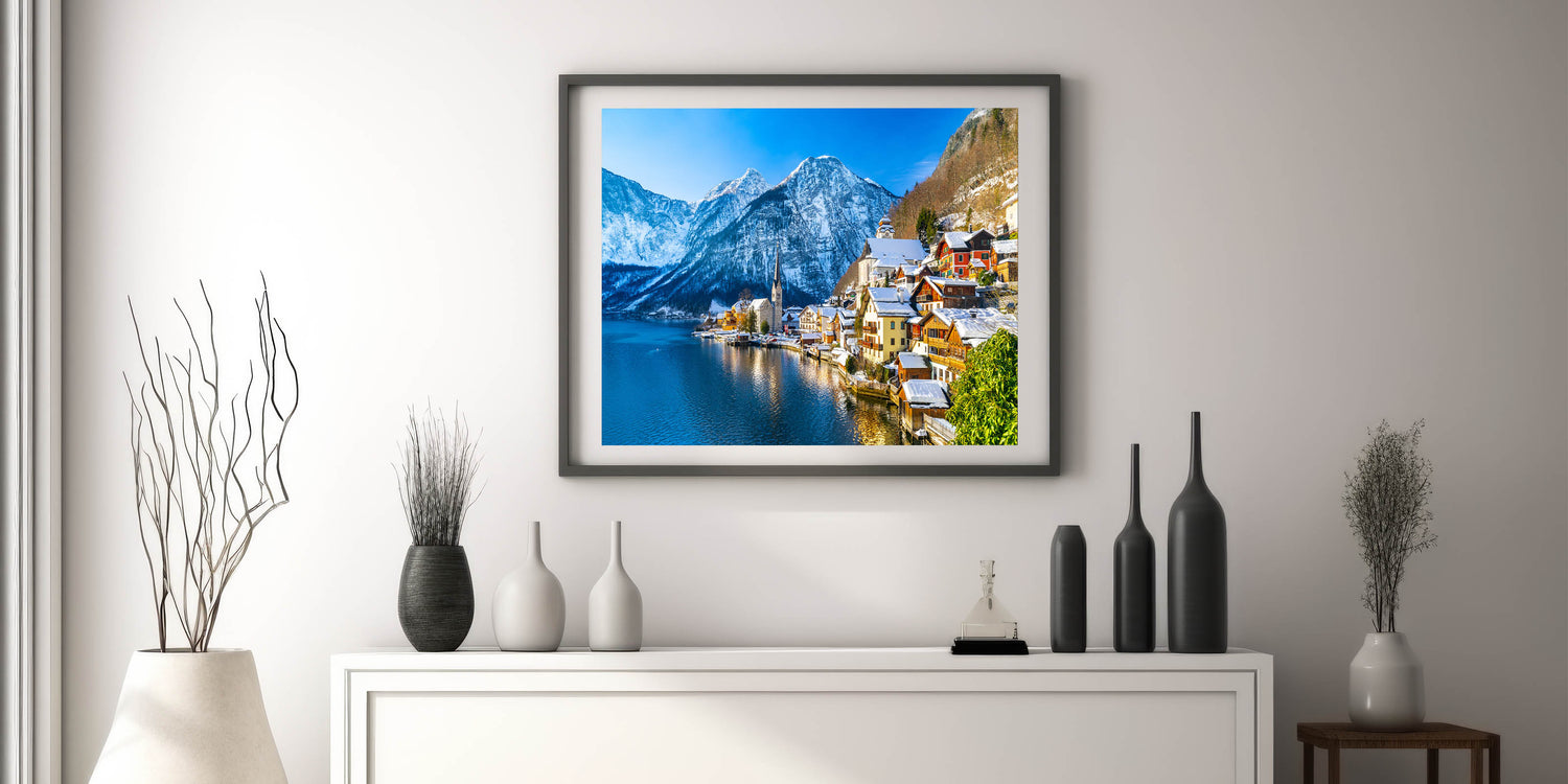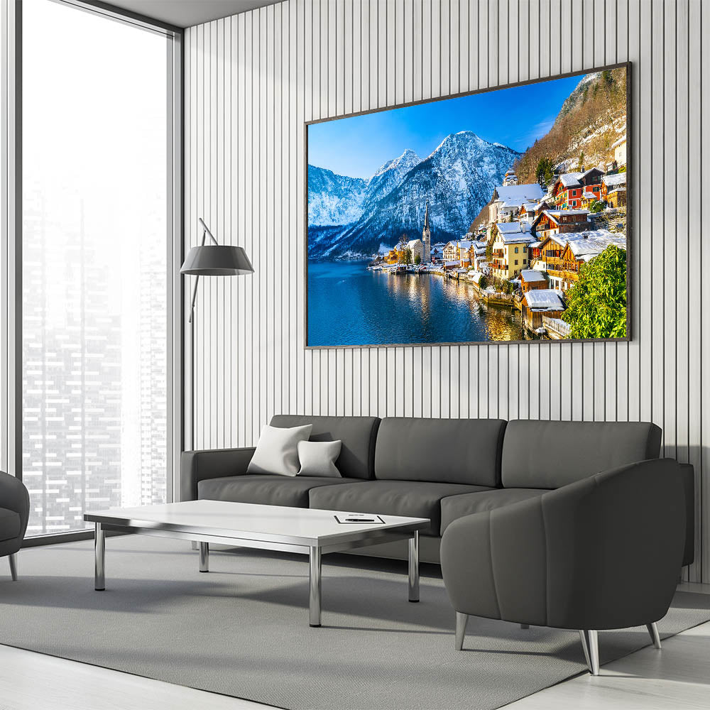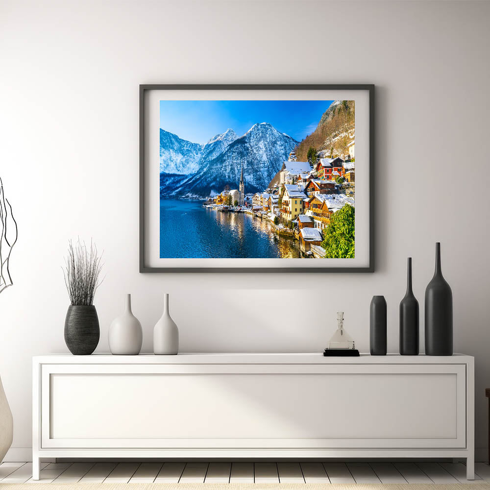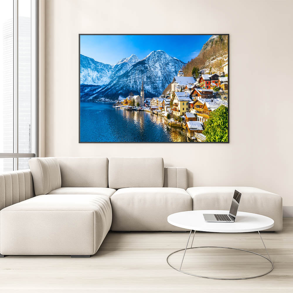 Bring the magic of winter into your living room, bedroom, or office with this captivating Alpine village scene. Its serene colors and breathtaking scenery will create a peaceful and inviting atmosphere, perfect for any room.