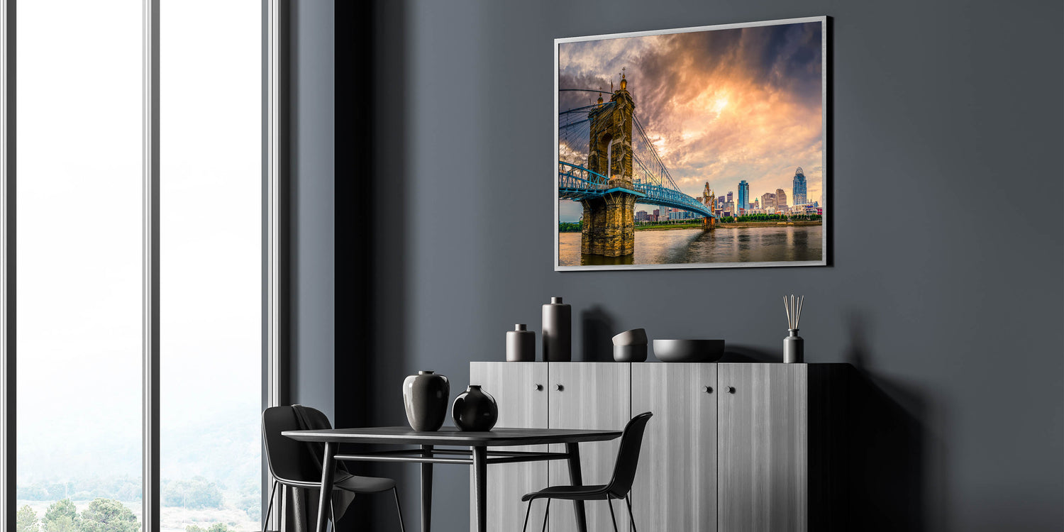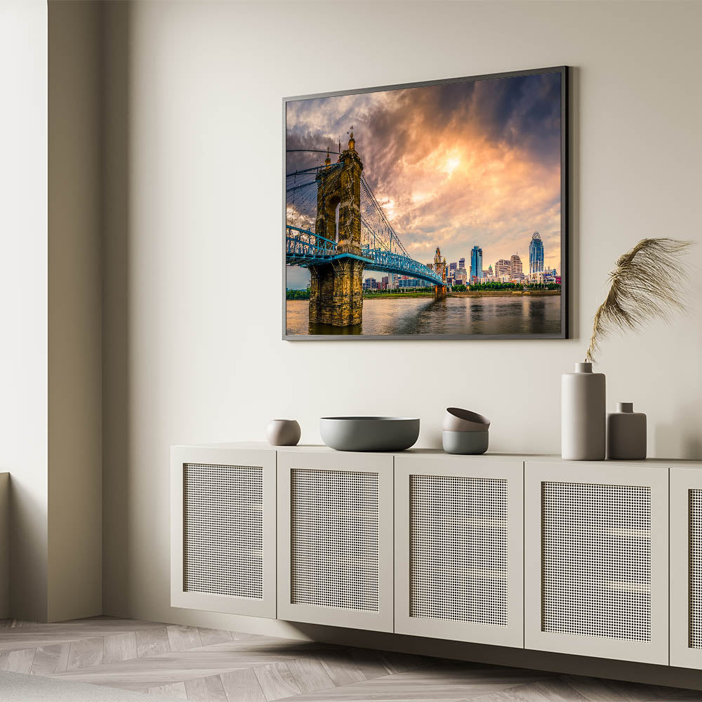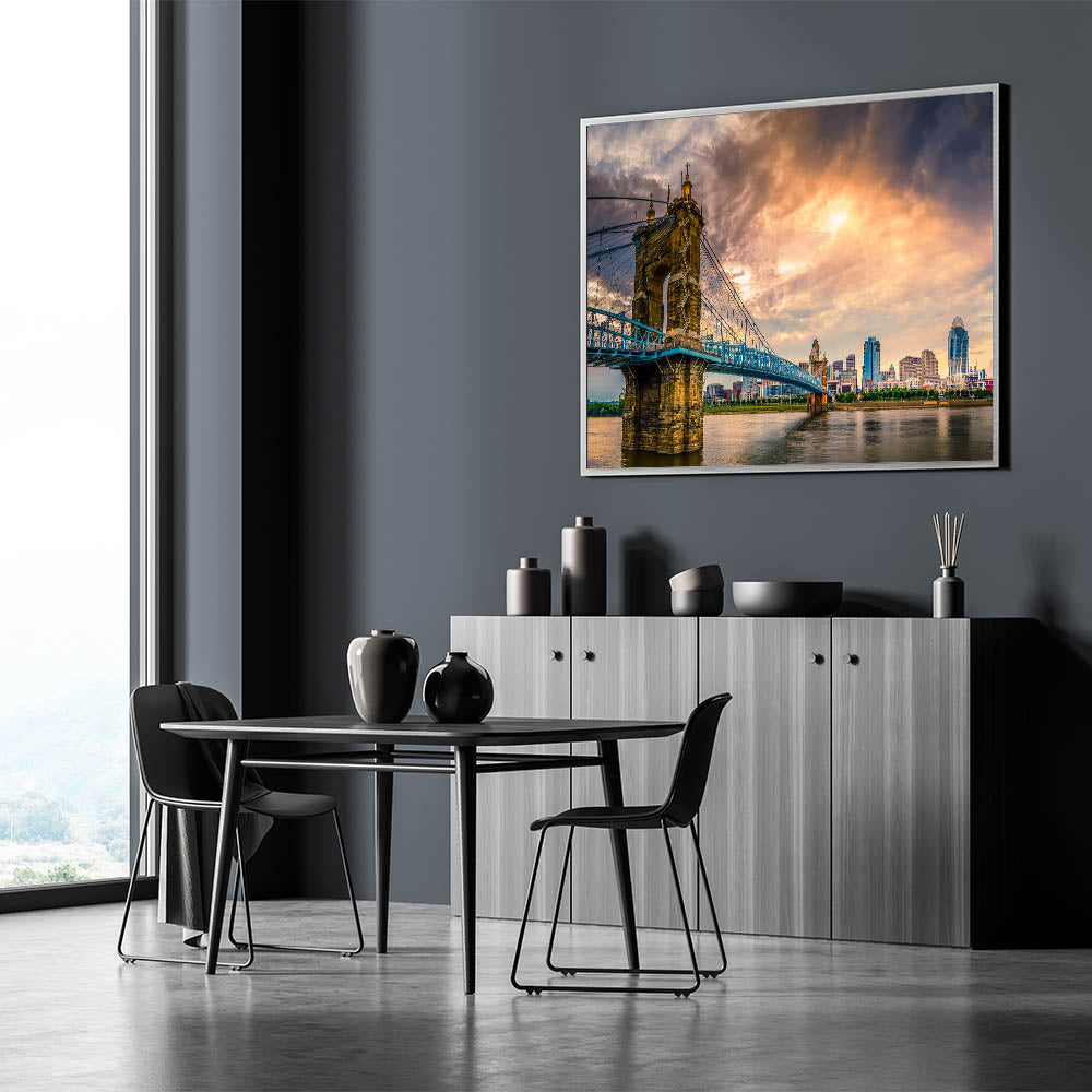 Cincinnati Bridge at Sunset - Dramatic Skyline Cityscape Wall Art