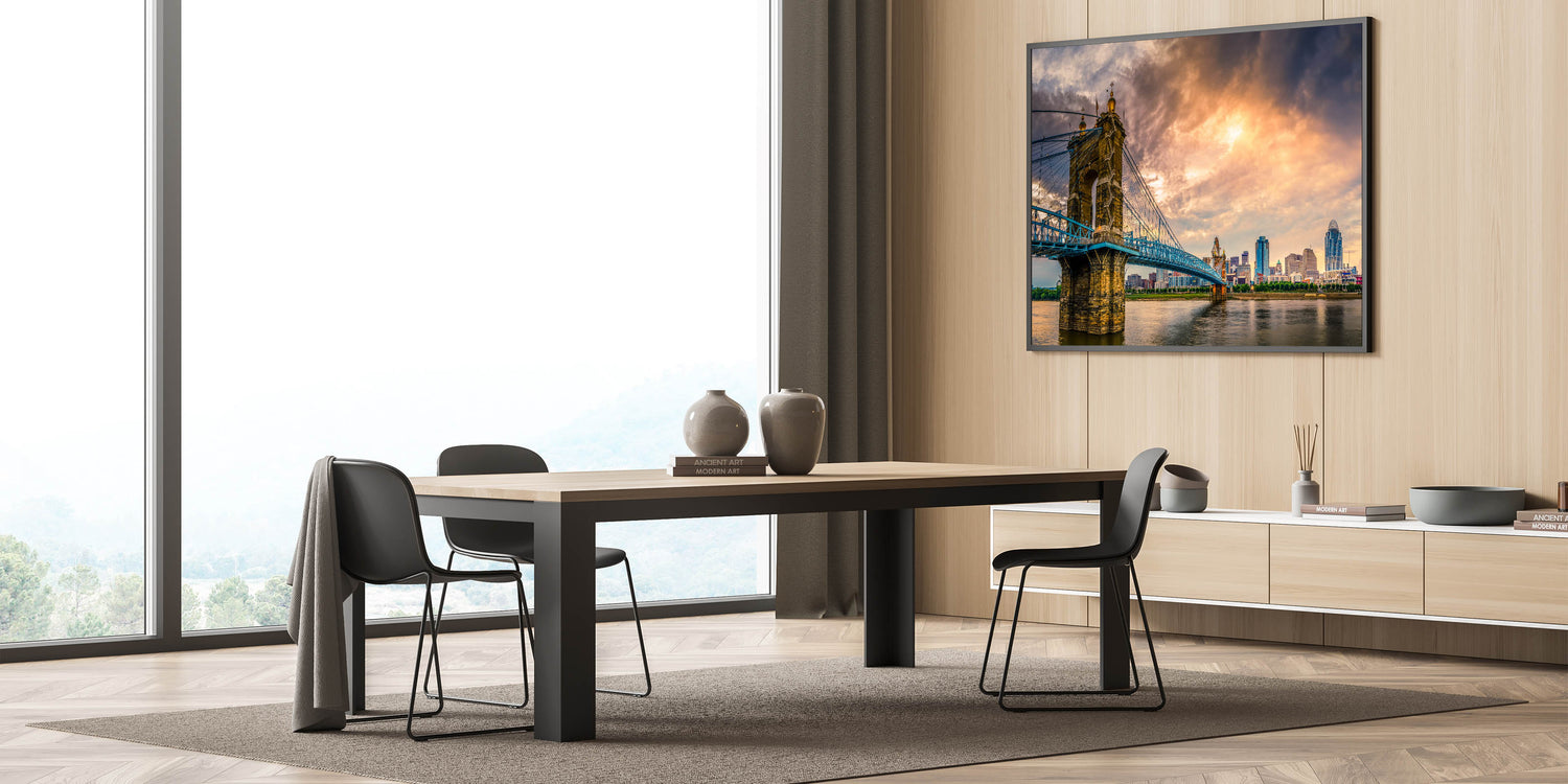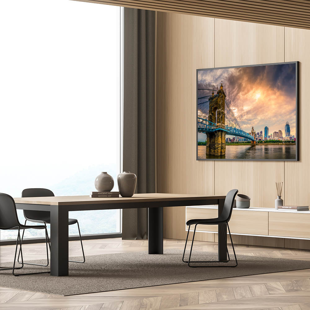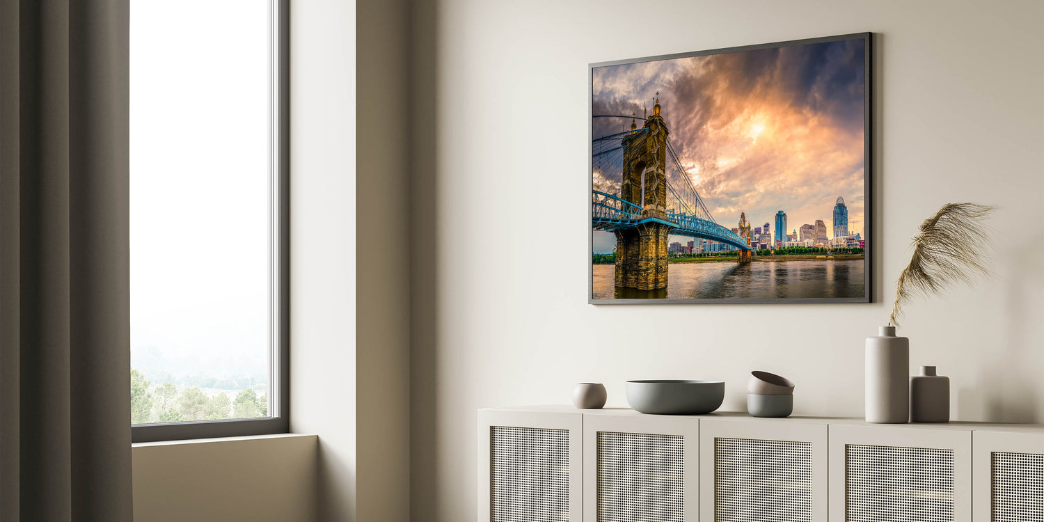 Cincinnati Bridge at Sunset - Dramatic Skyline Cityscape Wall Art