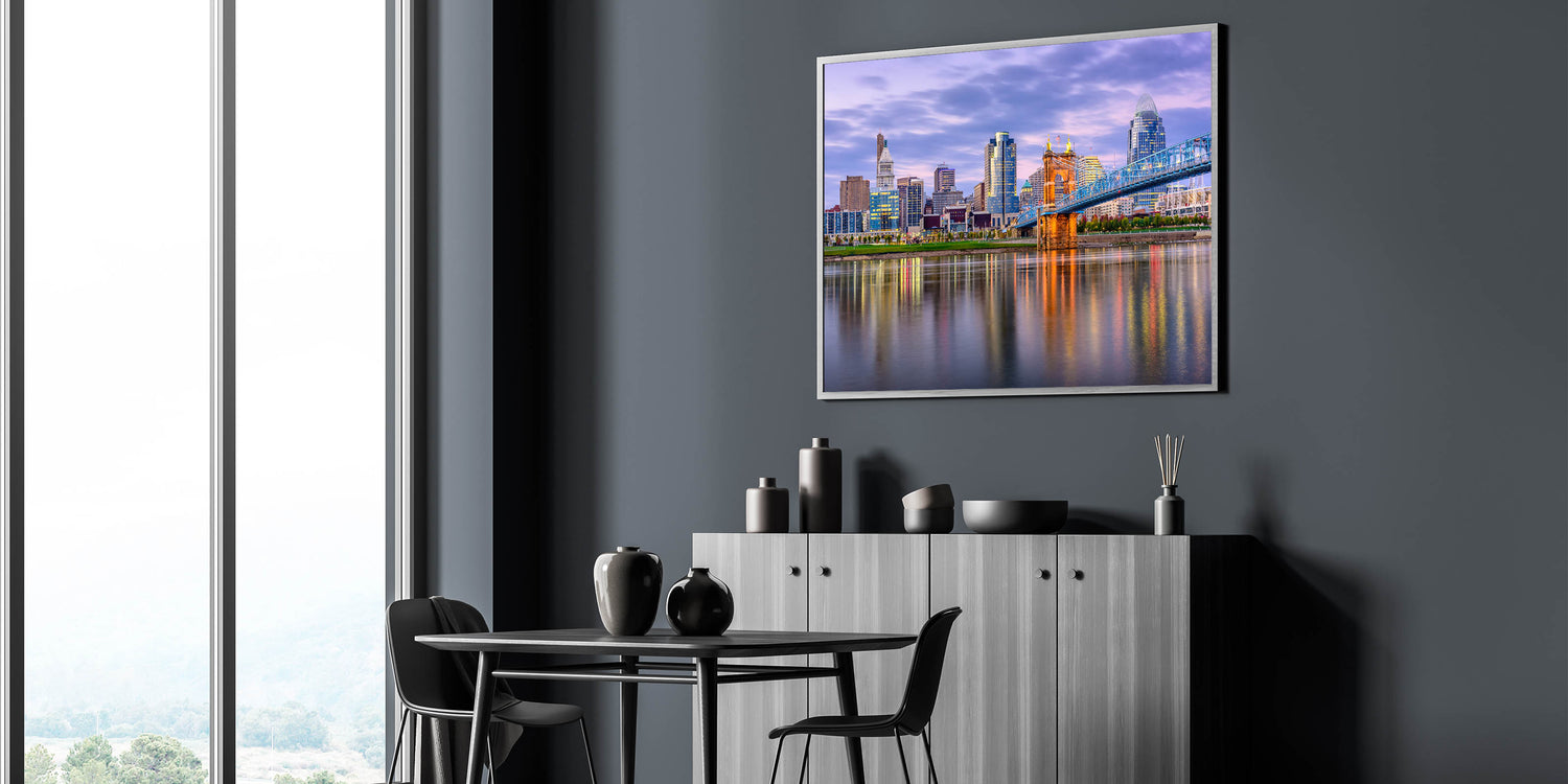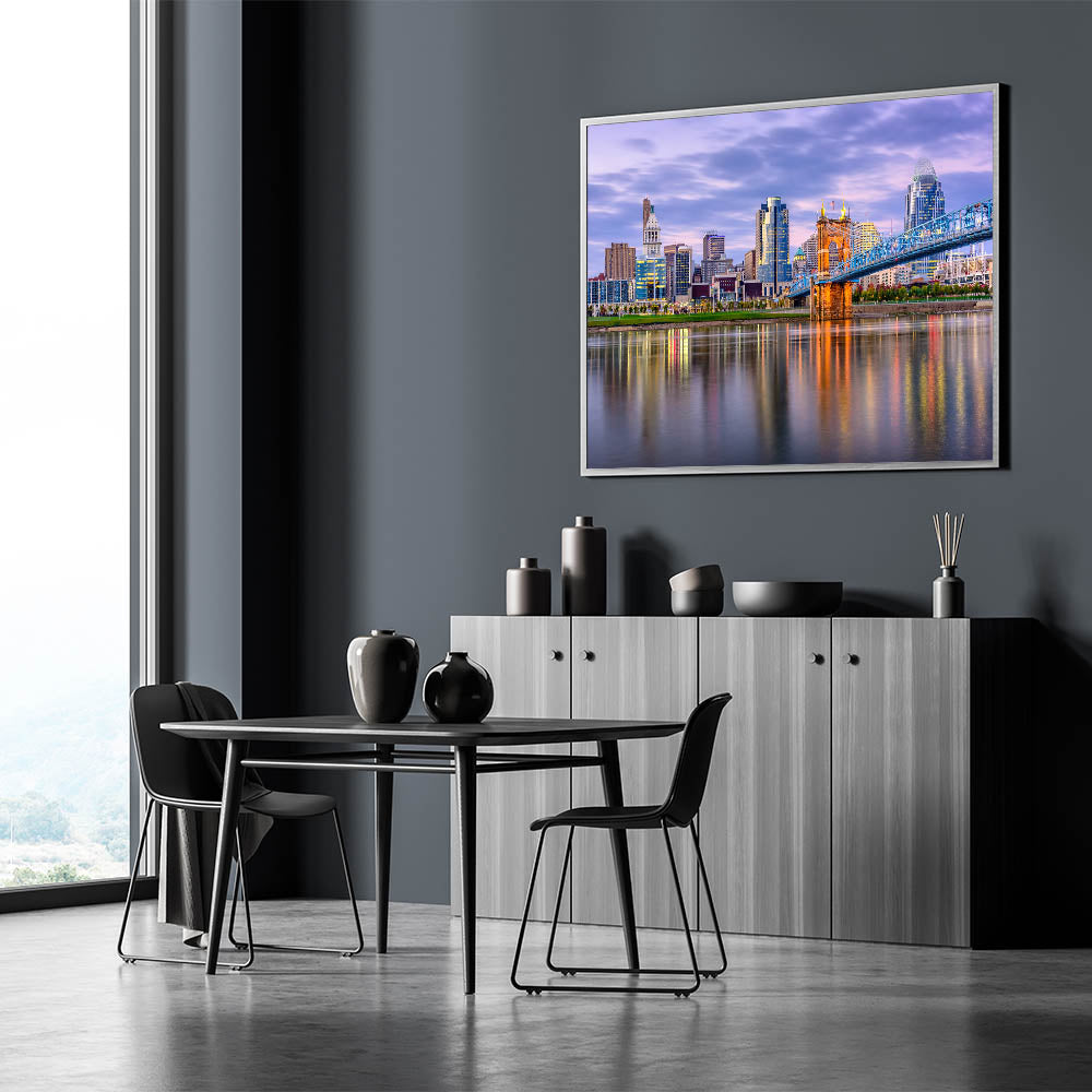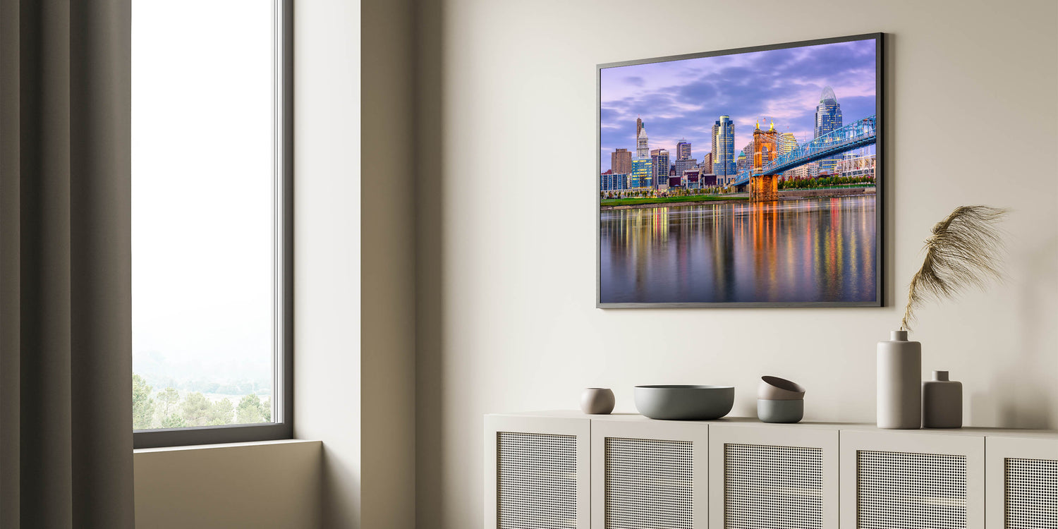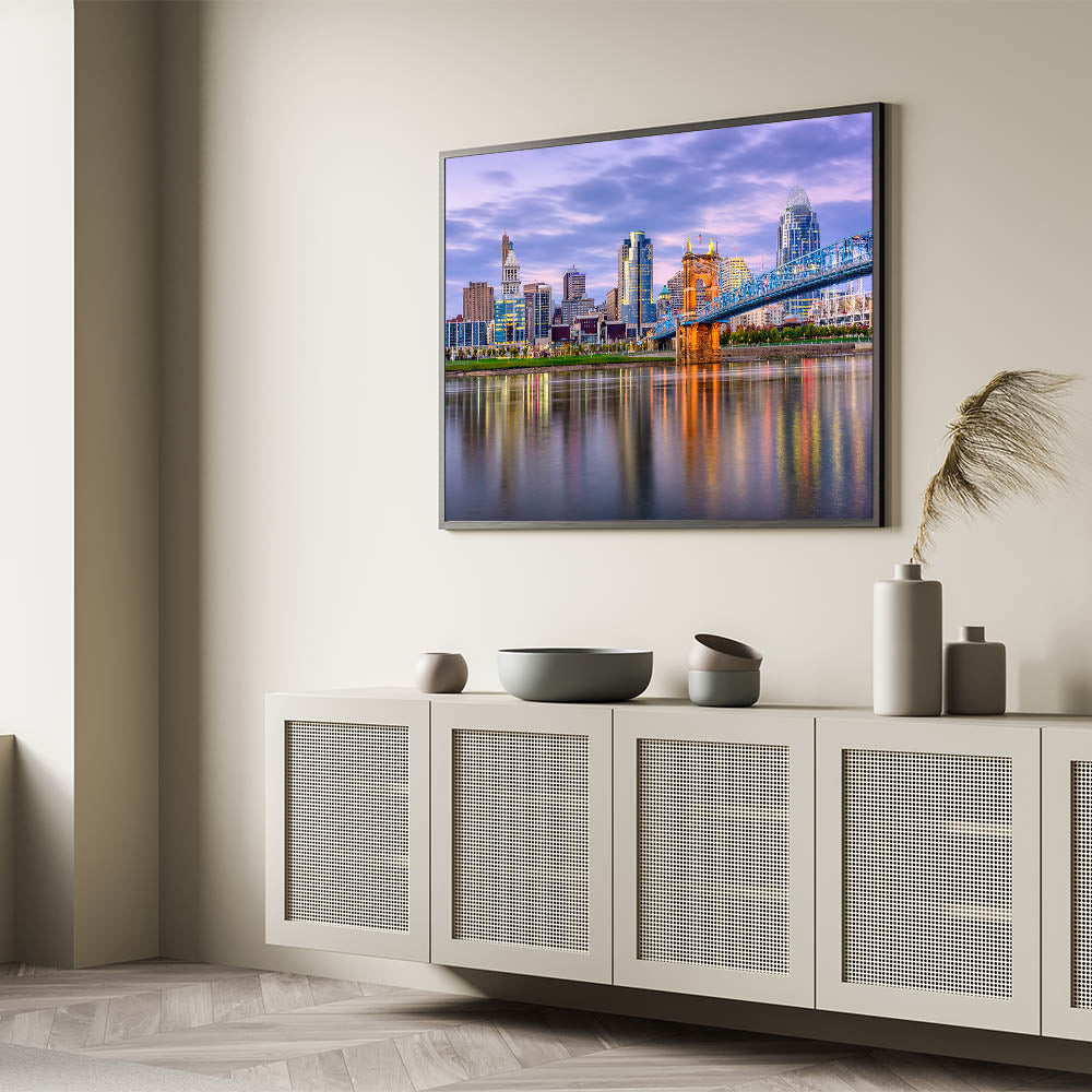 - Vibrant Colors: The rich sunset tones bring this Cincinnati cityscape to life, perfect for modern and contemporary interiors.