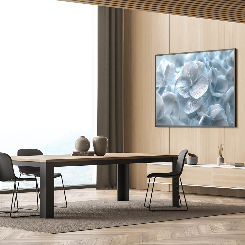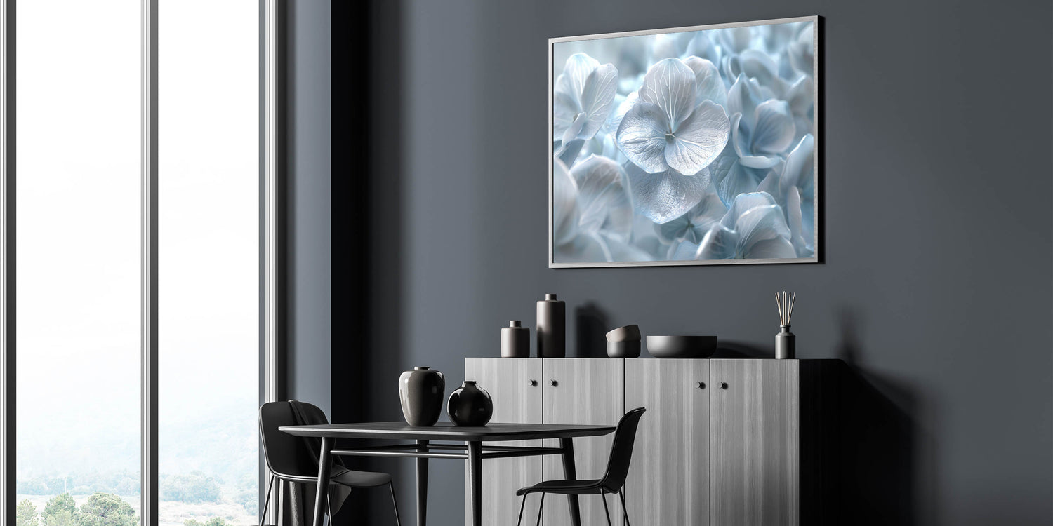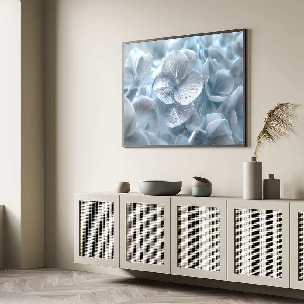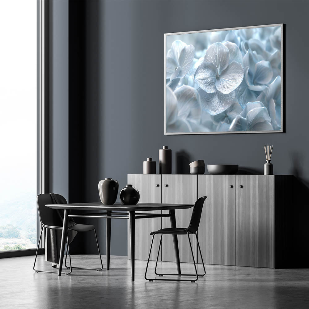 Capture the delicate beauty of nature with this stunning close-up Hydrangea Wall Art. Featuring soft blue hydrangea petals in exquisite detail, this artwork brings a calming and sophisticated touch to your home decor. The intricate textures of each petal are highlighted in a dreamy, ethereal composition that draws the eye and brings tranquility to any space.