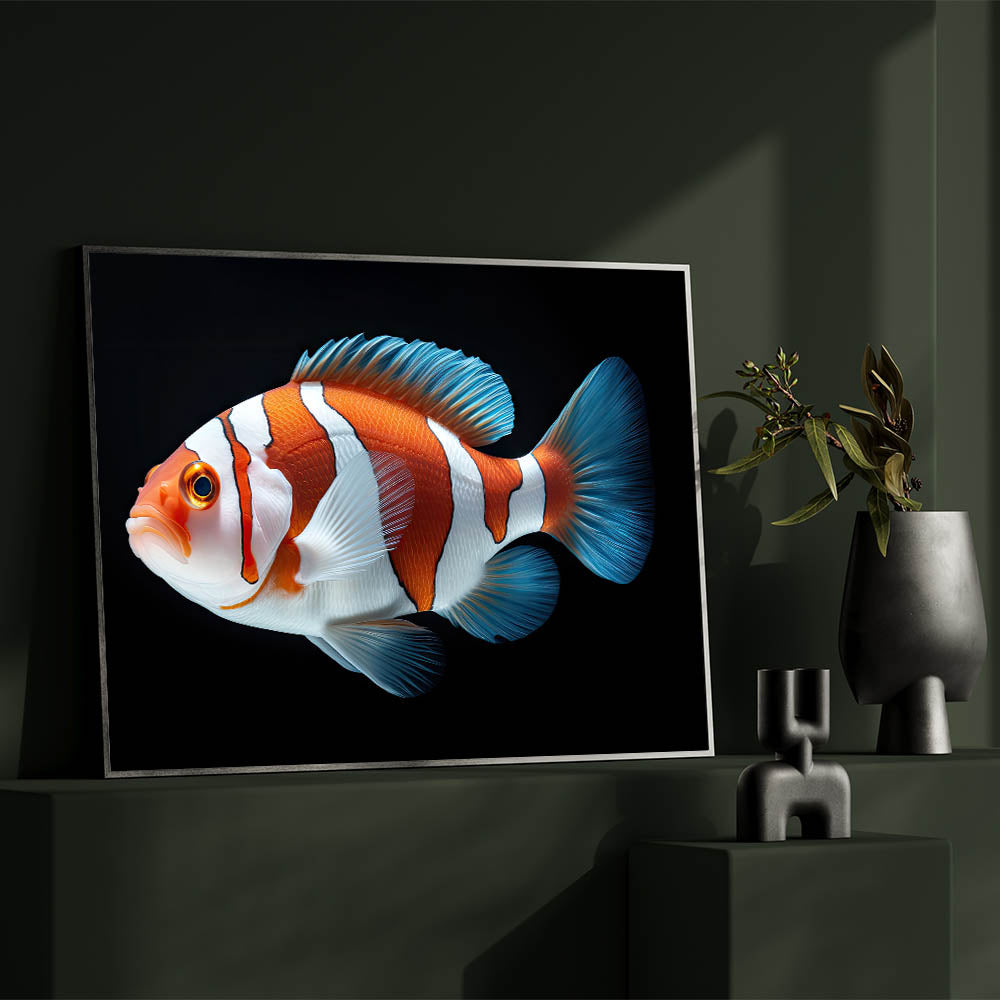 Capture the essence of marine life with this stunning Clownfish Portrait Wall Art. Featuring the iconic and vibrant Clownfish, this artwork brings the beauty of the ocean into your home, perfect for those who love the charm and color of underwater life.