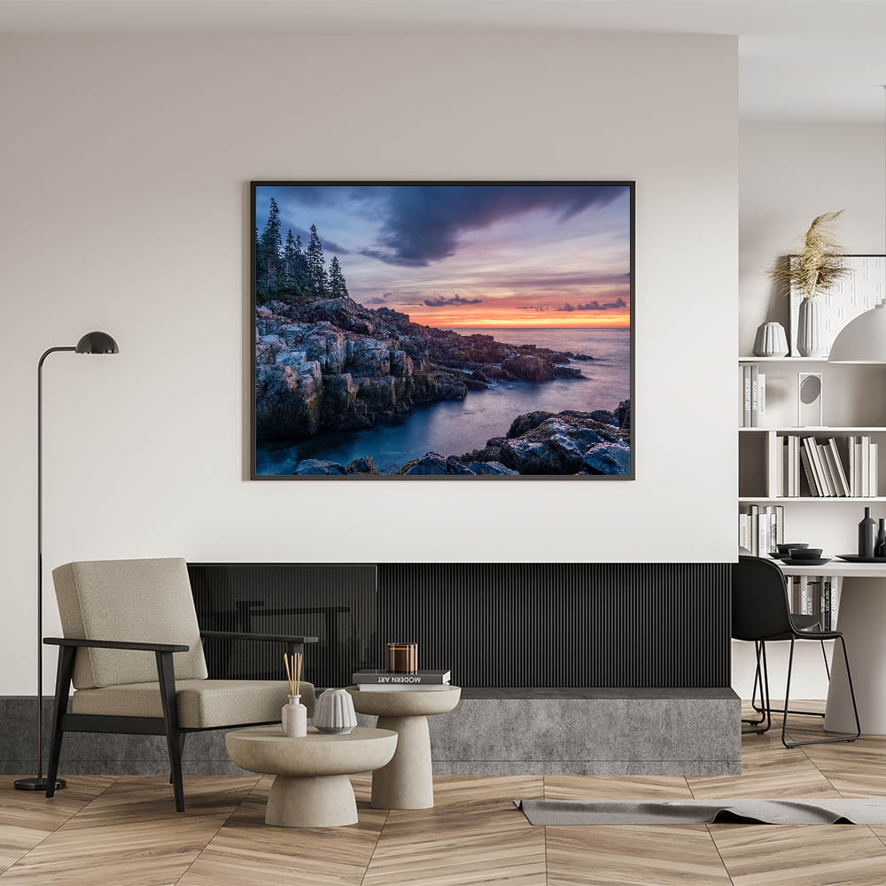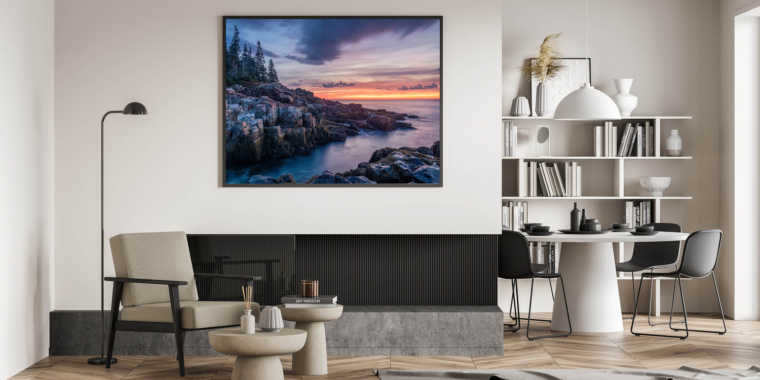 Coastal Maine Wall Art - Sunset Over Rocky Shores in Acadia National Park