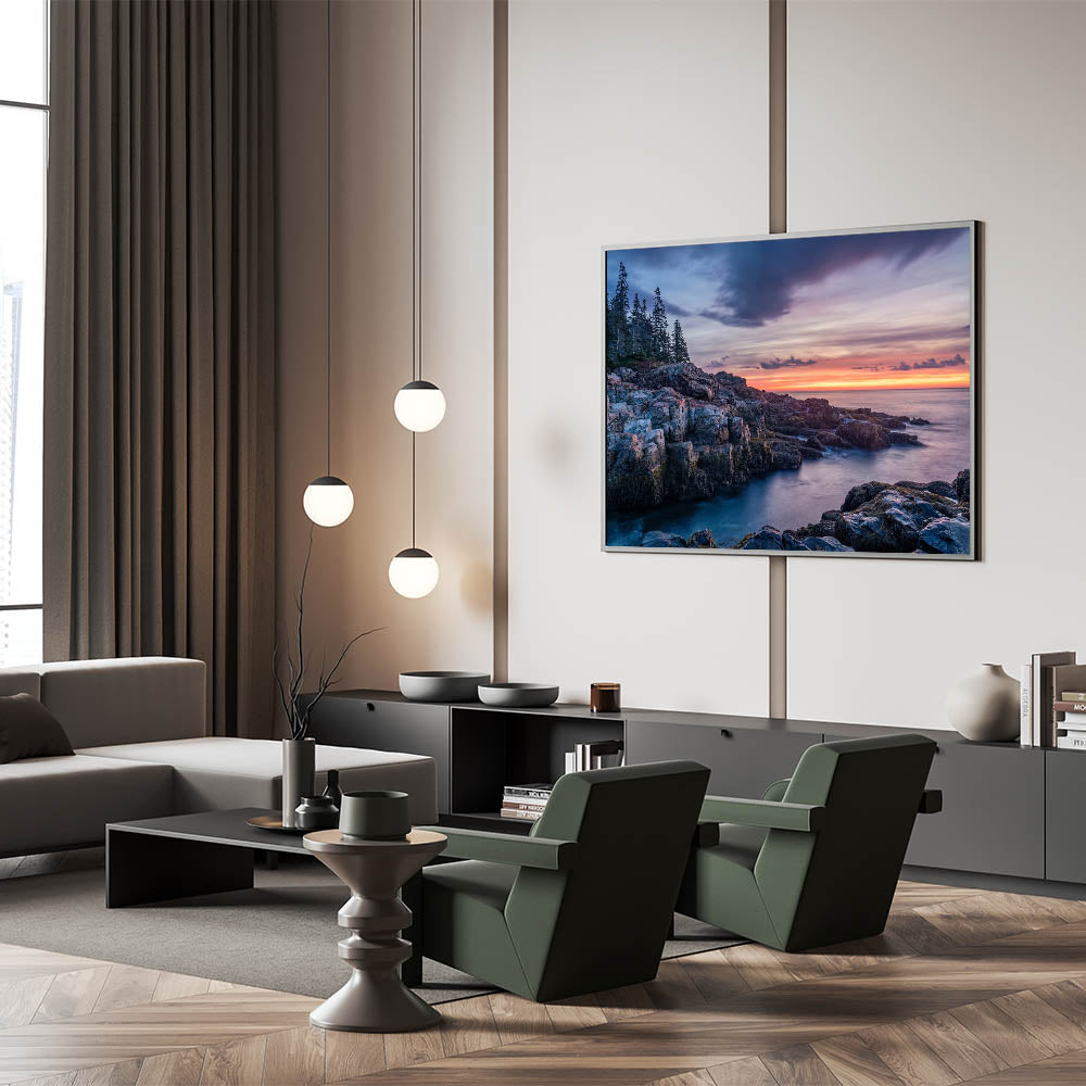 This beautiful Acadia landscape photography captures one of nature’s most breathtaking moments, making it a perfect choice for enhancing any room with the calming beauty of the ocean at sunset.