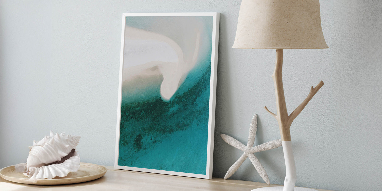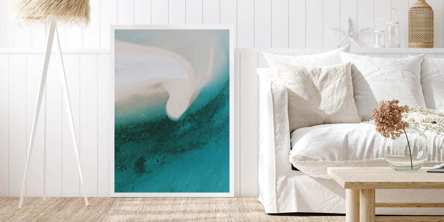 Coastal Wall Art - Aerial View of White Sand Beach and Blue Ocean Print