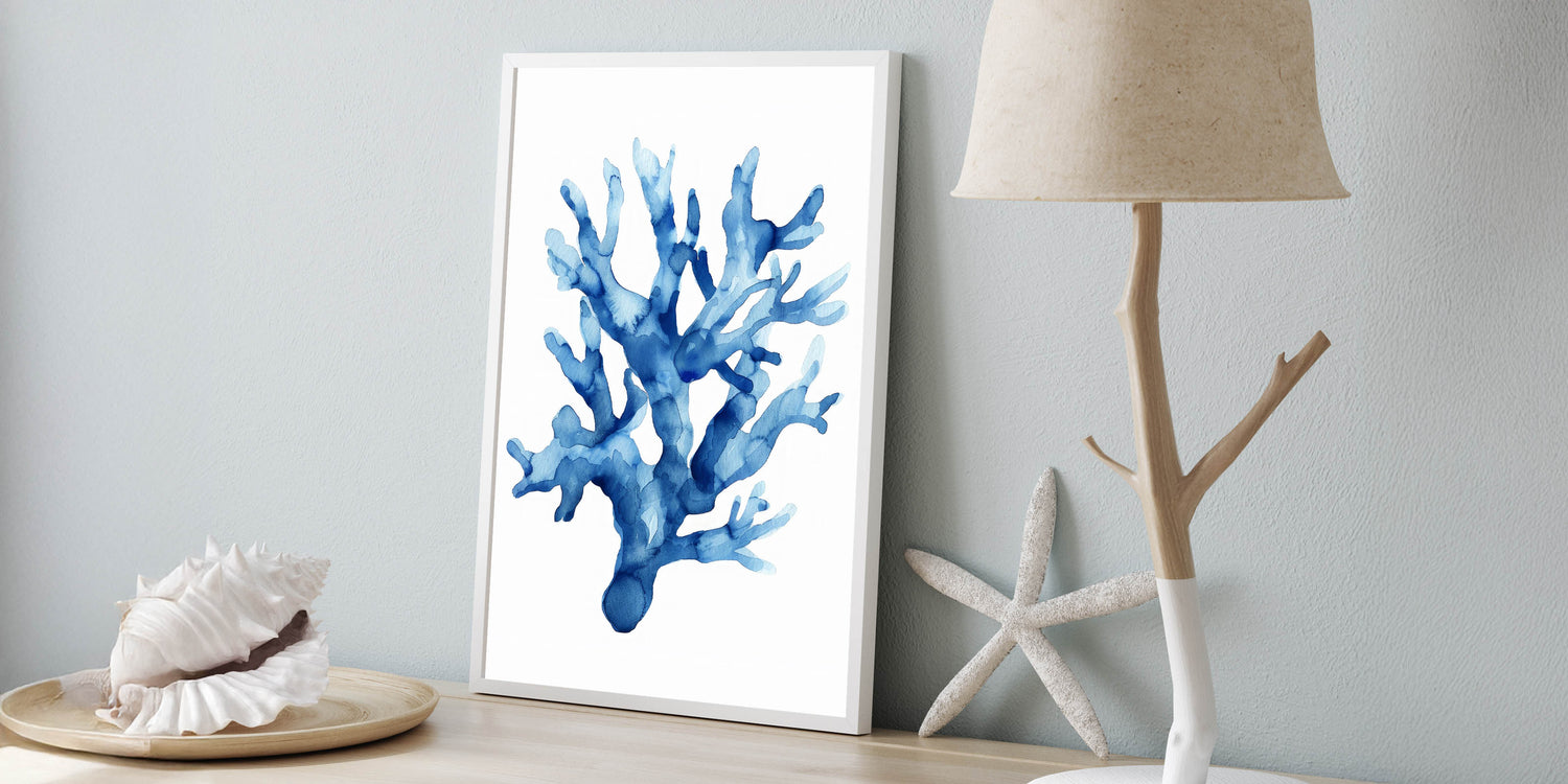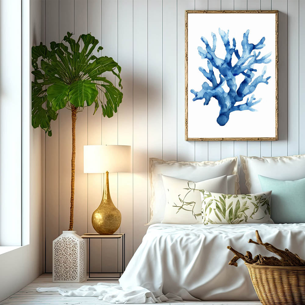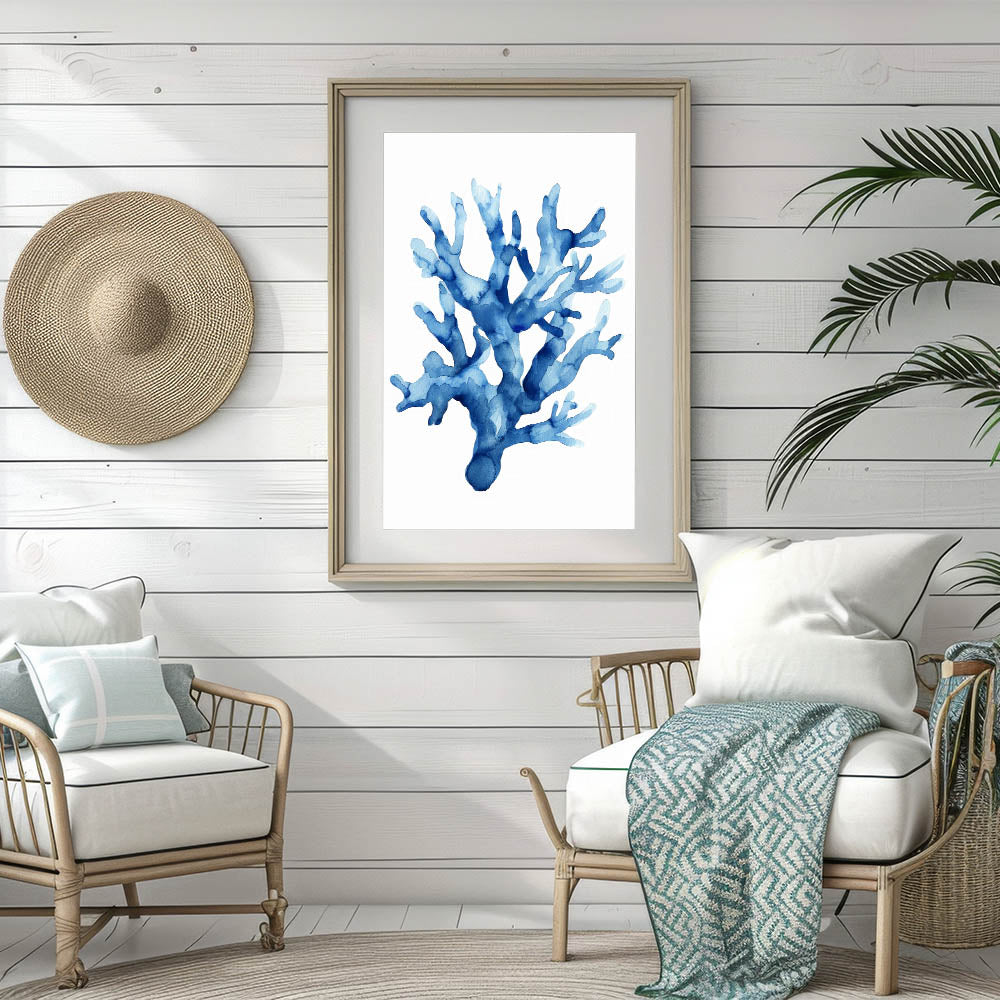 Coastal Wall Art: Blue Coral Illustration - Ocean-Inspired Nautical Print