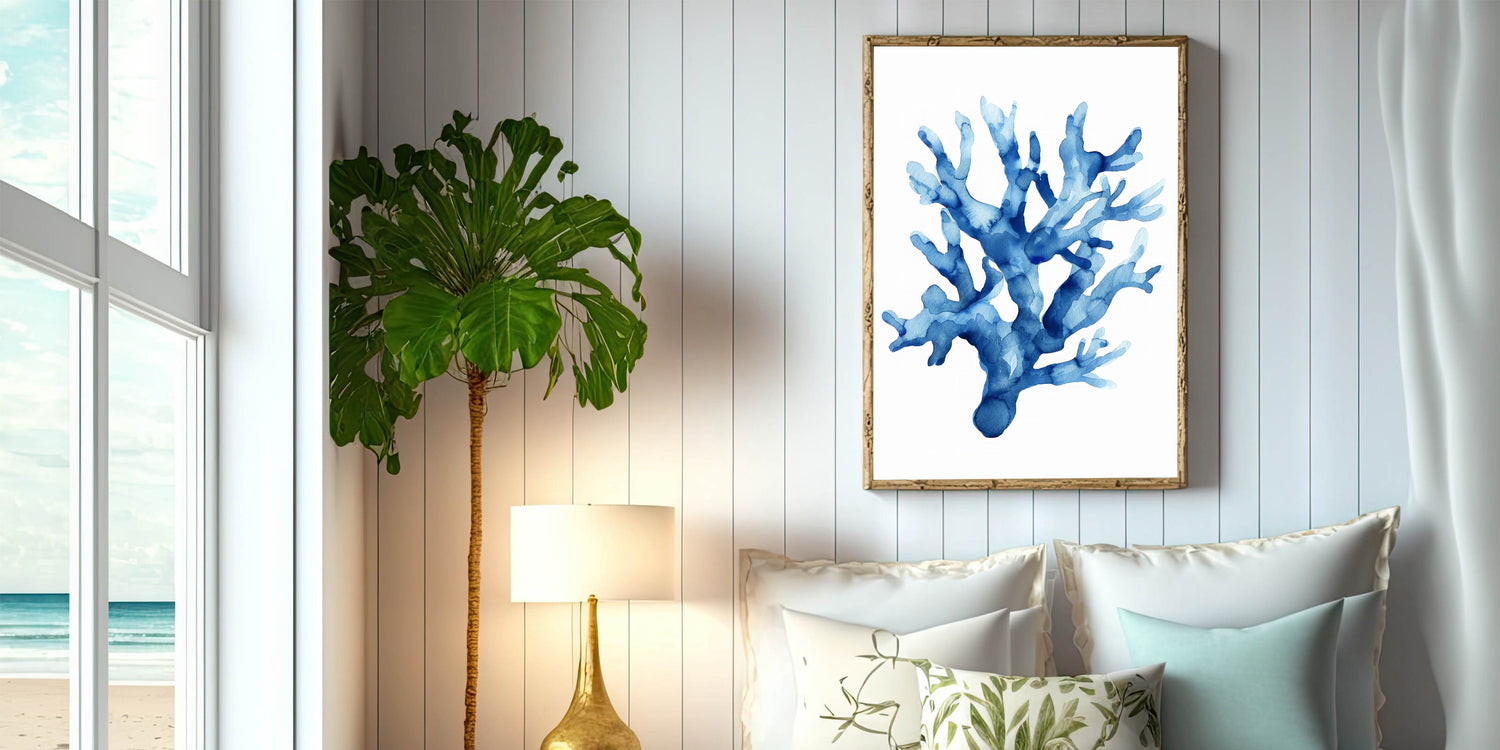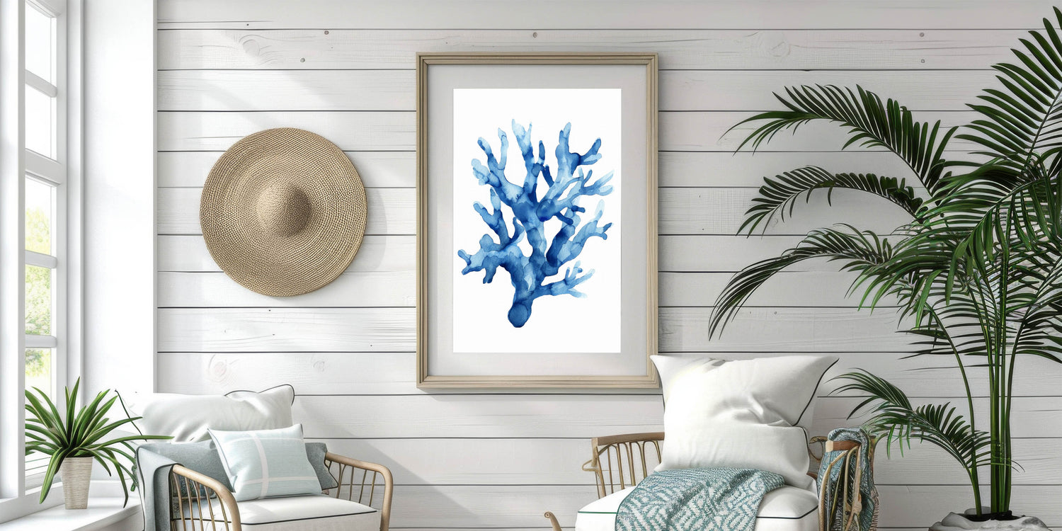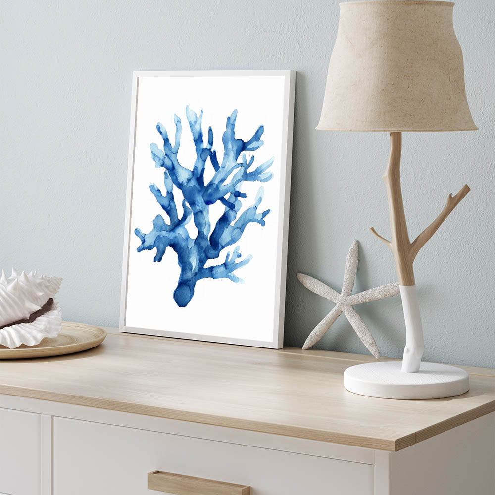 Coastal Wall Art: Blue Coral Illustration - Ocean-Inspired Nautical Print