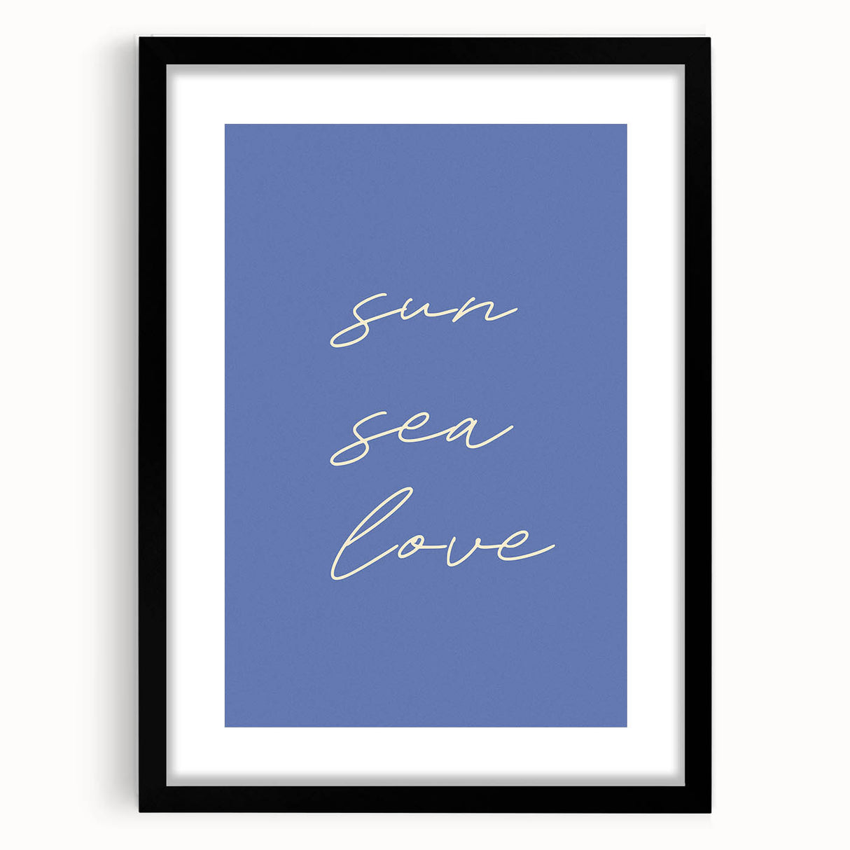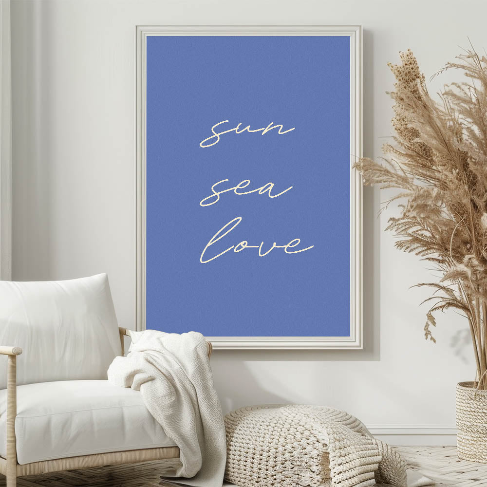 Coastal Wall Art - Minimalist 'Sun Sea Love' Beach-Themed Typography Print