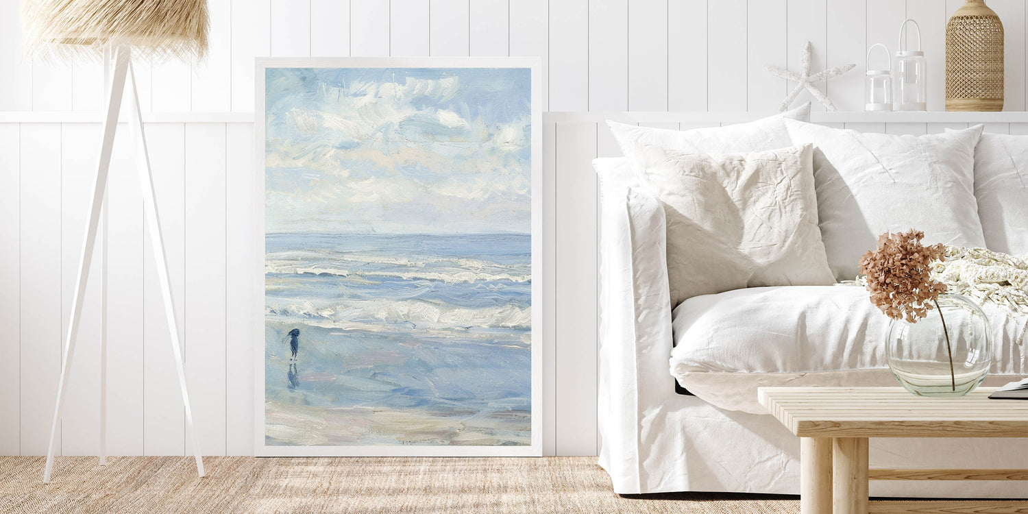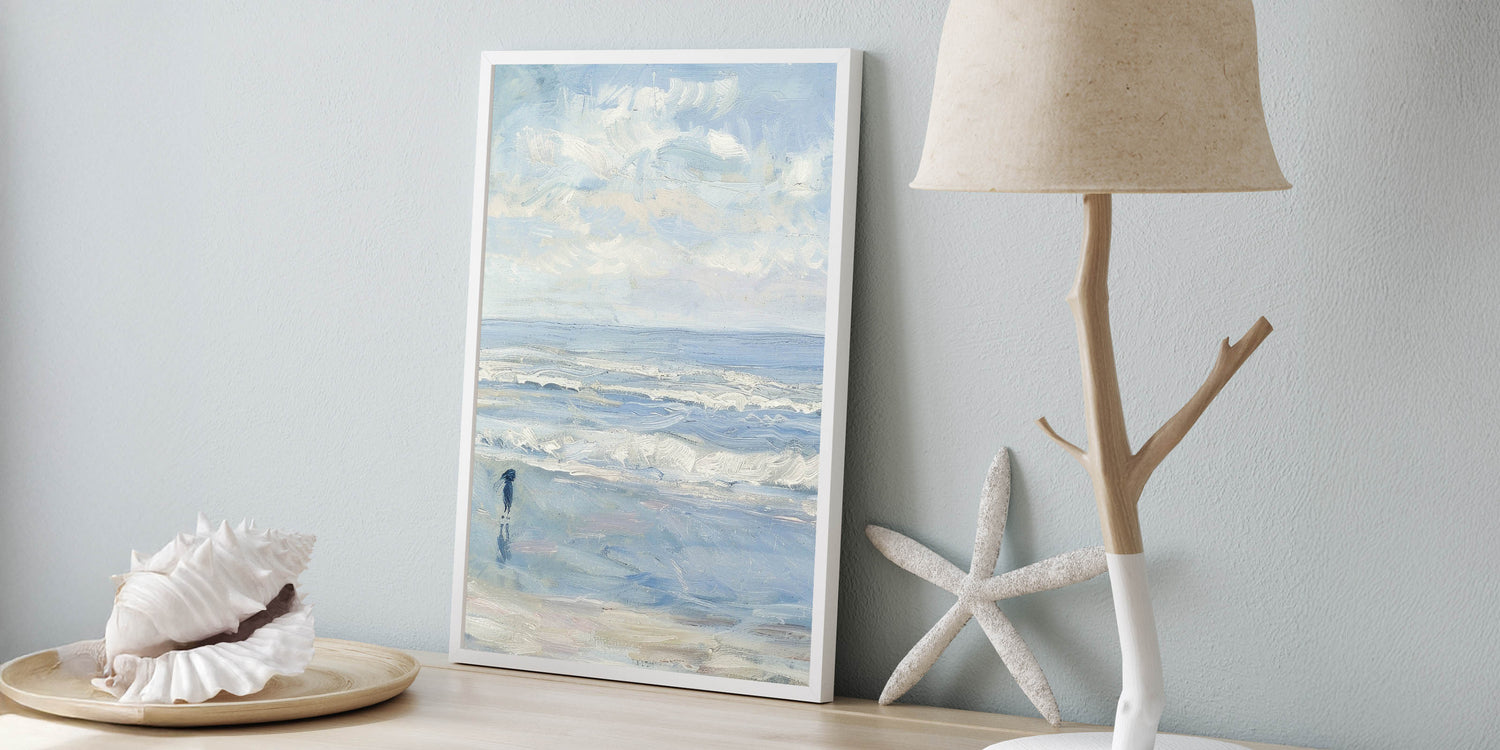 Invite the gentle calm of the ocean into your home with this beautiful coastal artwork, perfect for creating a serene, beach-inspired environment.
