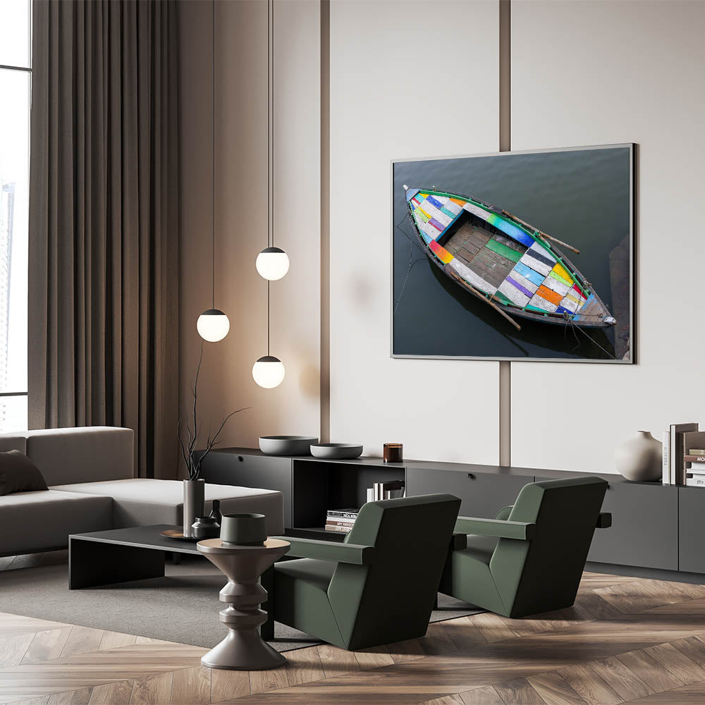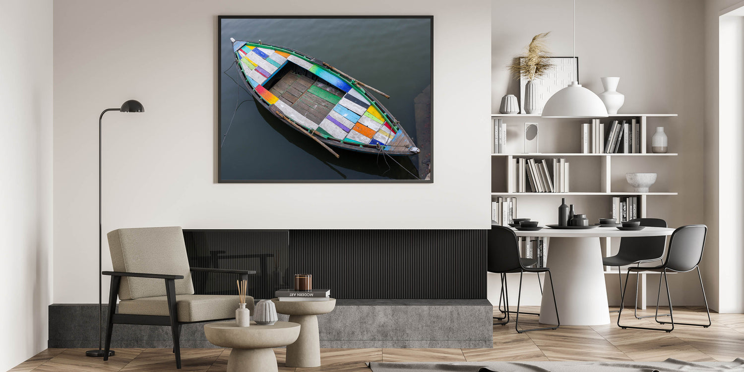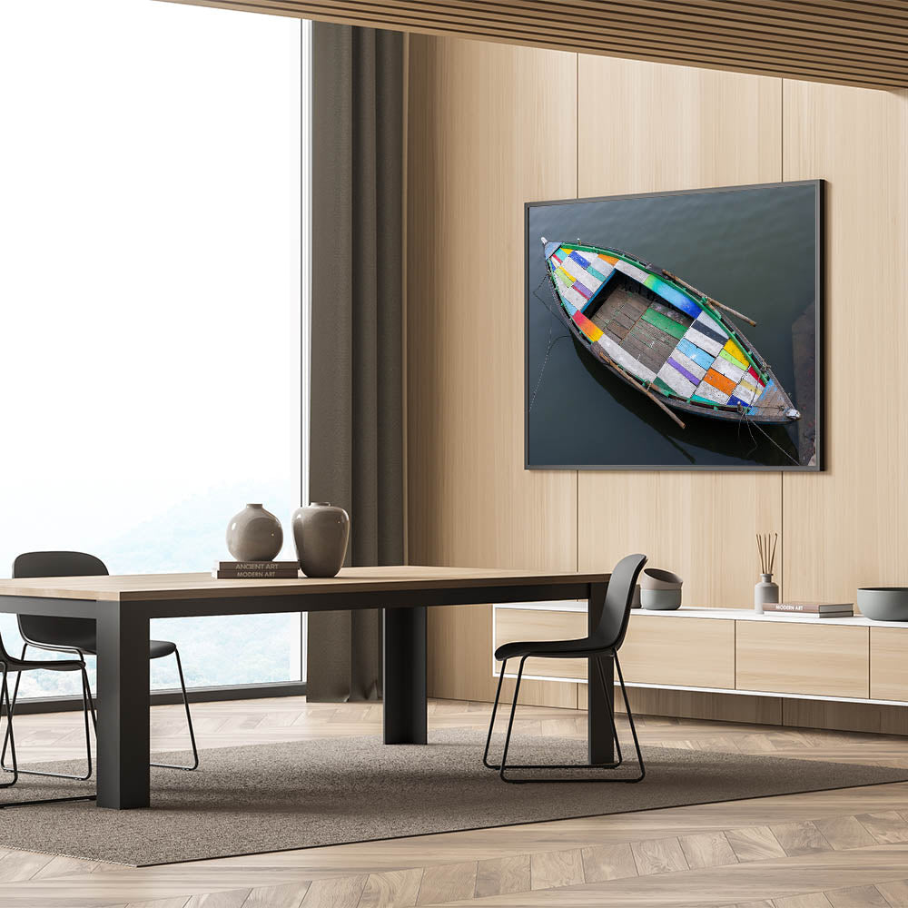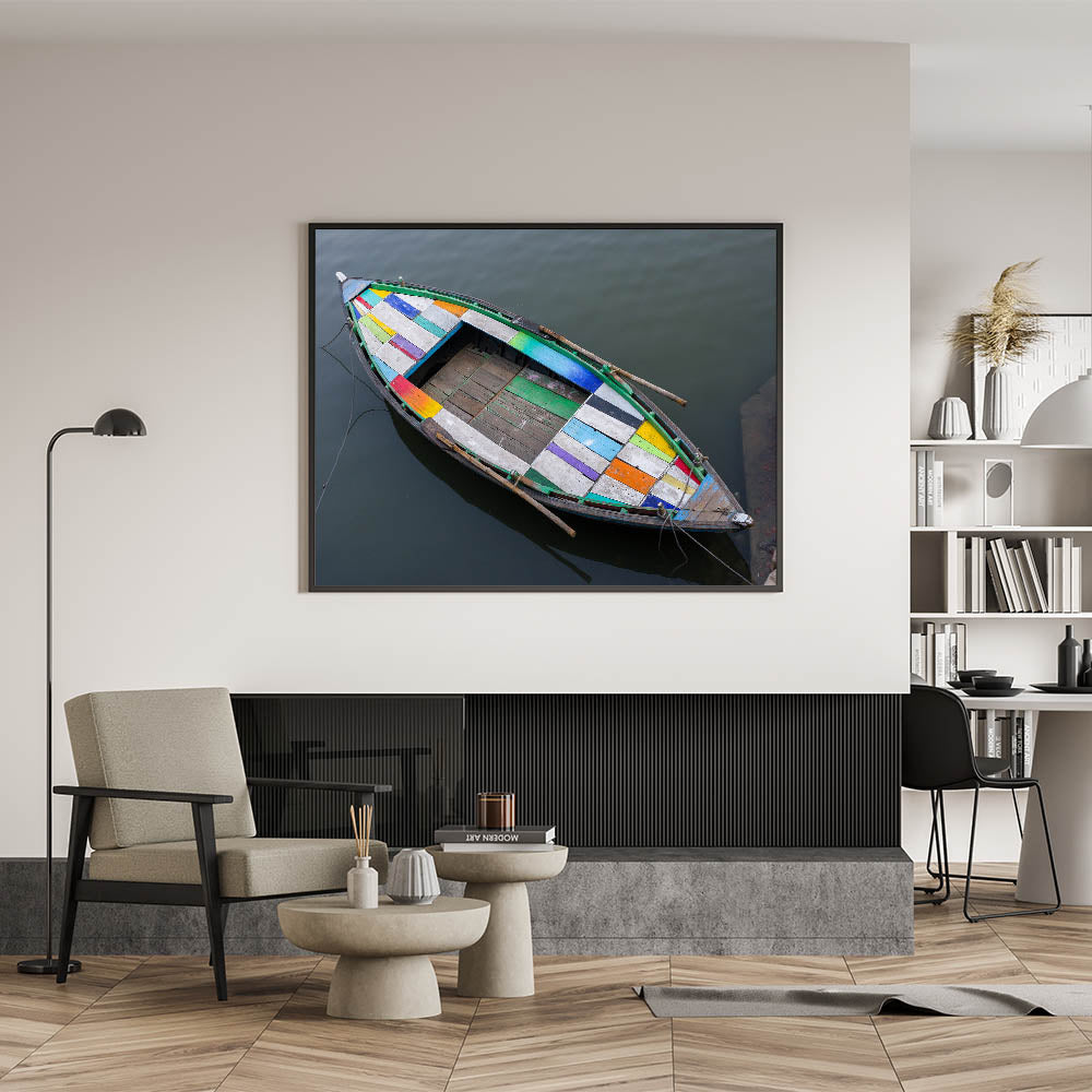 Colorful Boat on Water – Vibrant Indian Landscape Wall Art Canvas Print