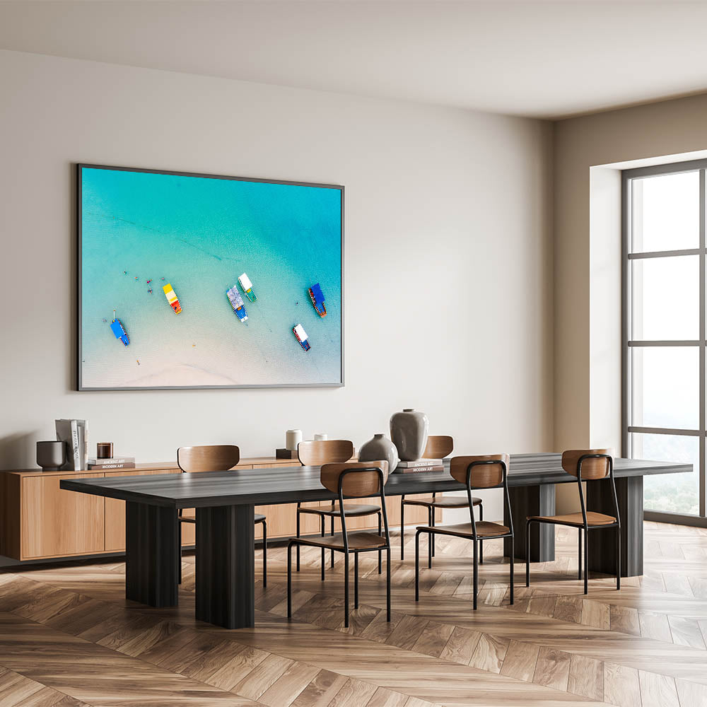 - Available in high-quality formats such as stretched canvas, framed canvas, and acrylic glass.