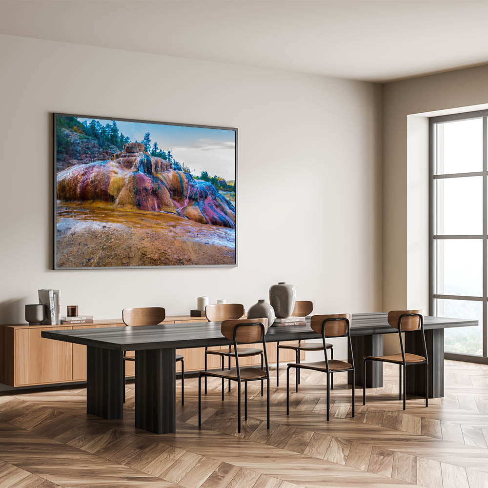 This hot spring wall art is perfect for those who appreciate bold and colorful decor. Whether for a living room, office, or creative space, this piece will bring a burst of energy and a touch of nature’s wonder into your environment. Enhance your home or workspace with this stunning piece of art.
