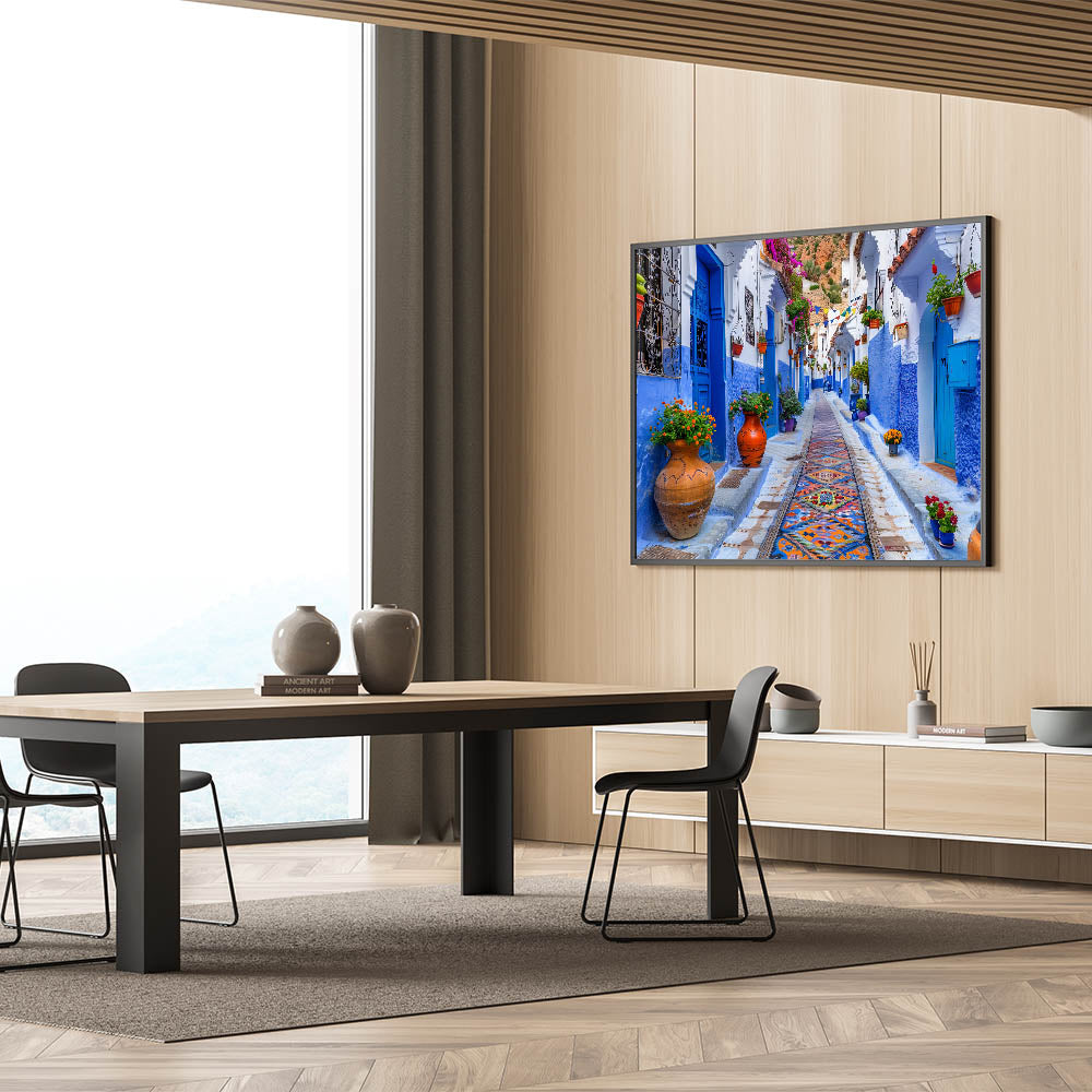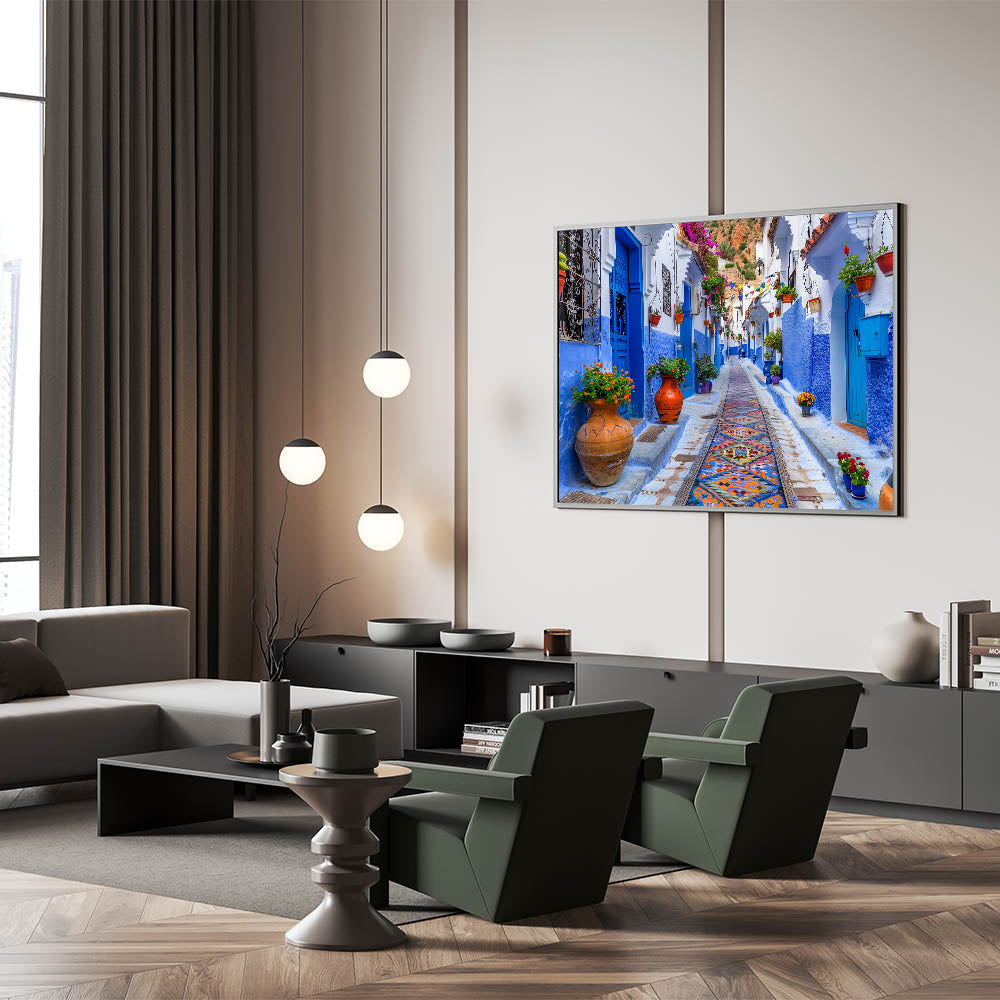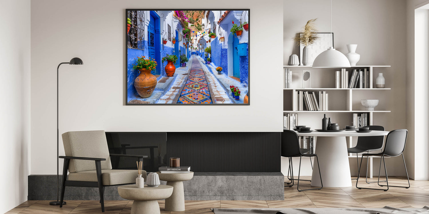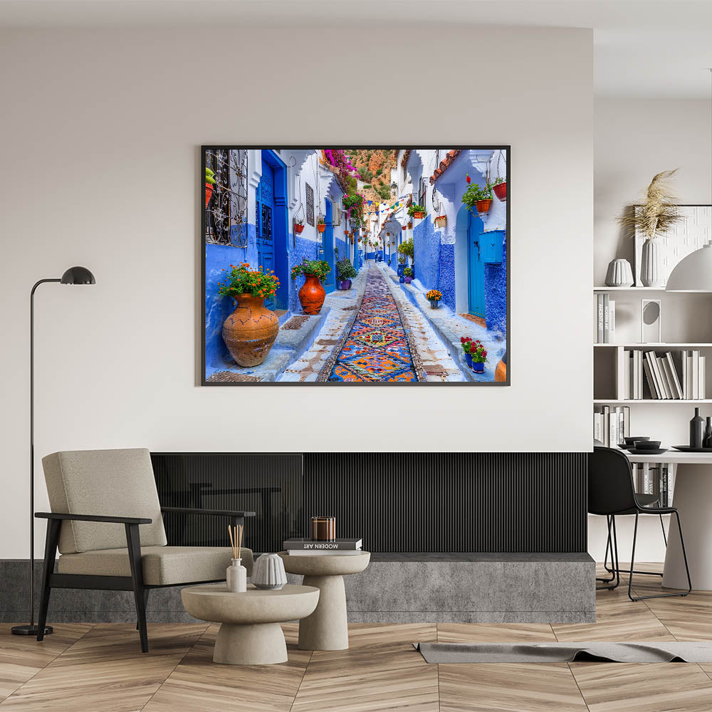 Bring the essence of Moroccan streets into your home with this vibrant artwork, ideal for those who appreciate colorful and culturally rich decor.