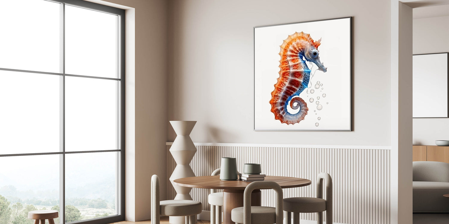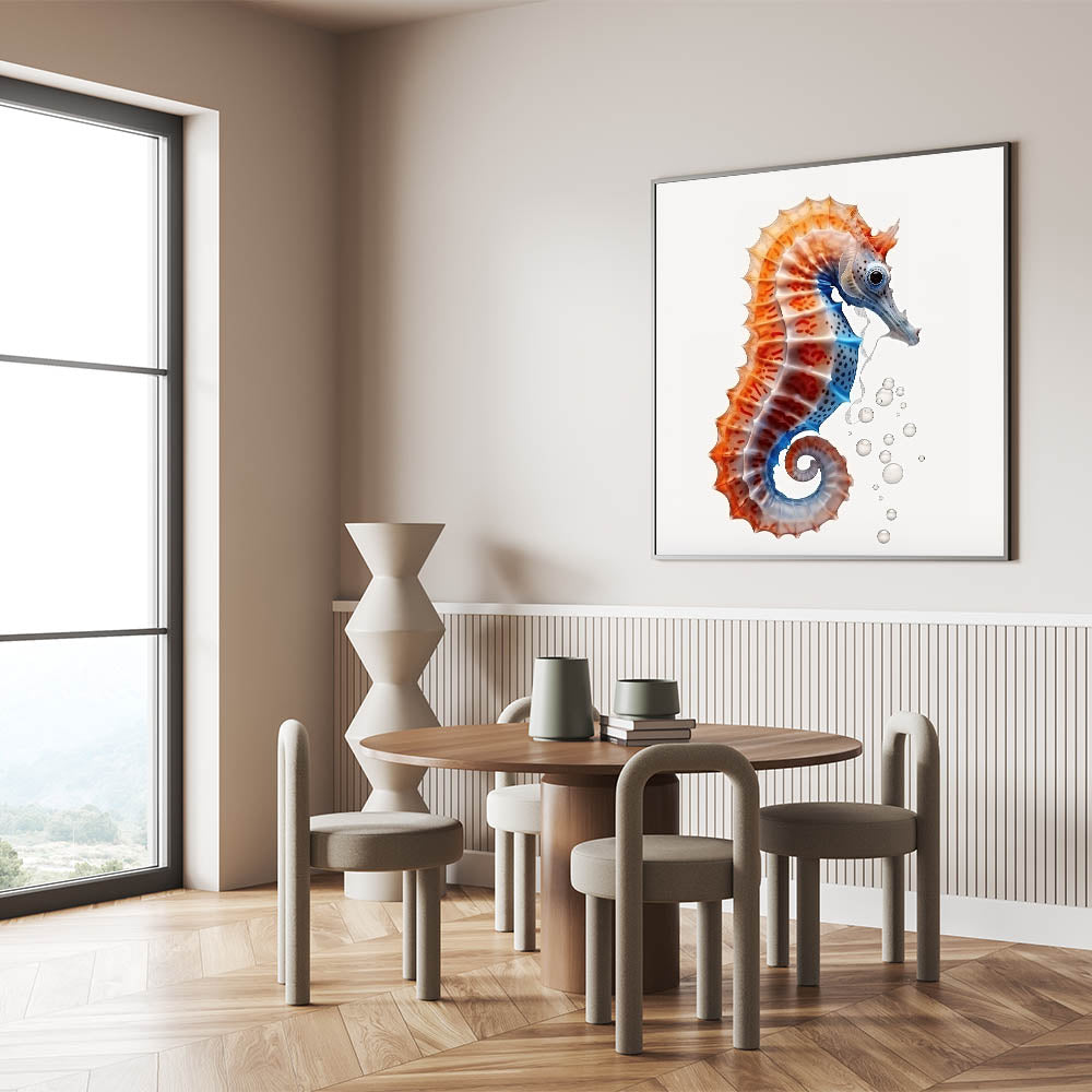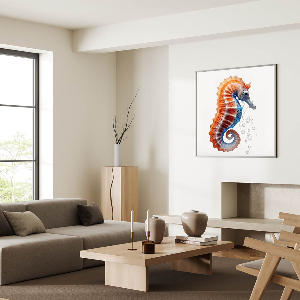 This seahorse canvas print is more than just an artwork; it’s a celebration of the ocean’s lively colors and intricate forms. Whether you're decorating a coastal-themed room or looking to add a striking focal point, this artwork is sure to impress.