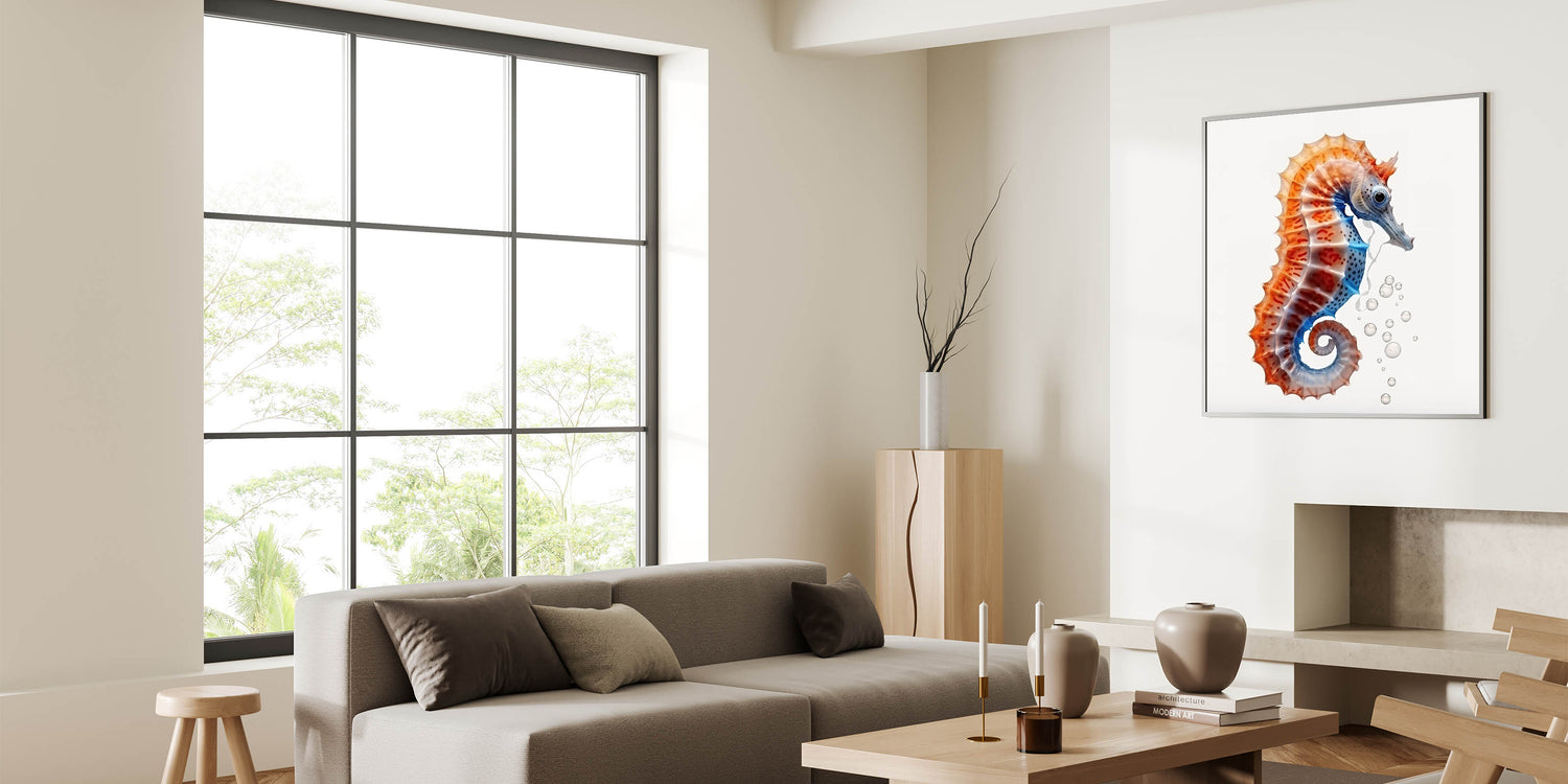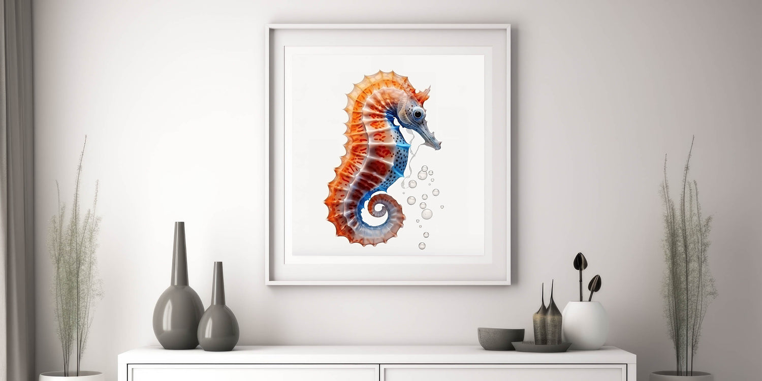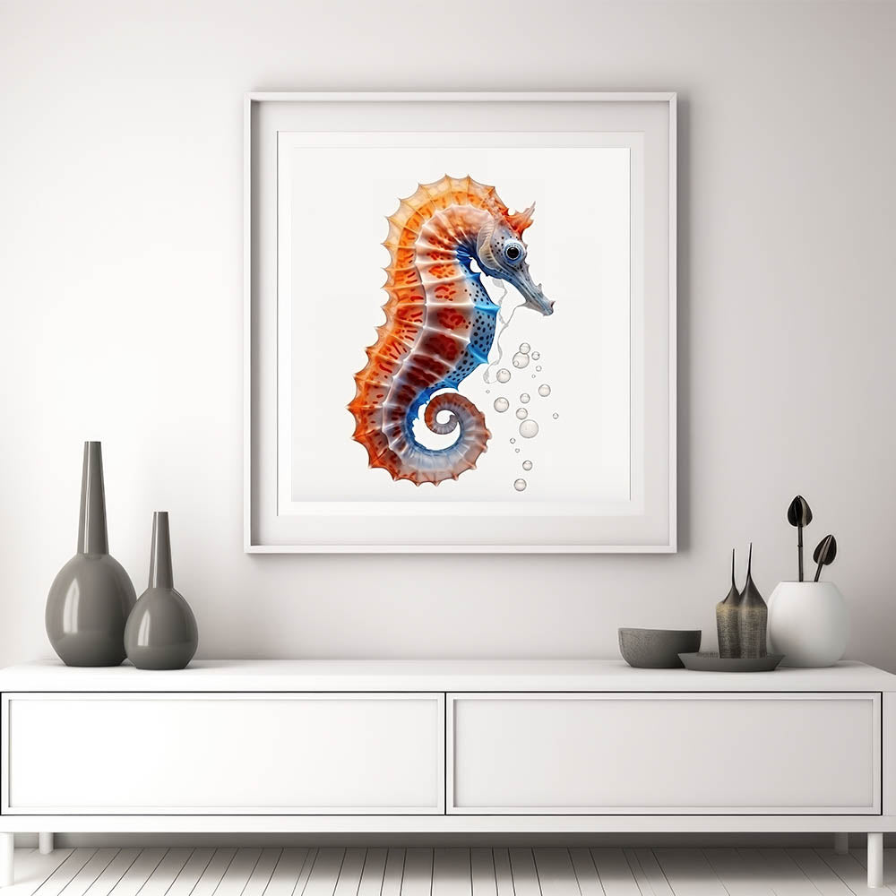 This seahorse canvas print is more than just an artwork; it’s a celebration of the ocean’s lively colors and intricate forms. Whether you're decorating a coastal-themed room or looking to add a striking focal point, this artwork is sure to impress.