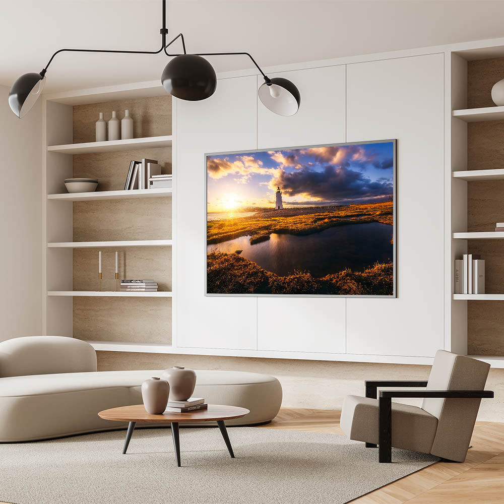 - Available in multiple formats: stretched canvas, framed canvas, acrylic glass, framed acrylic glass, framed print, rolled canvas, and rolled print.