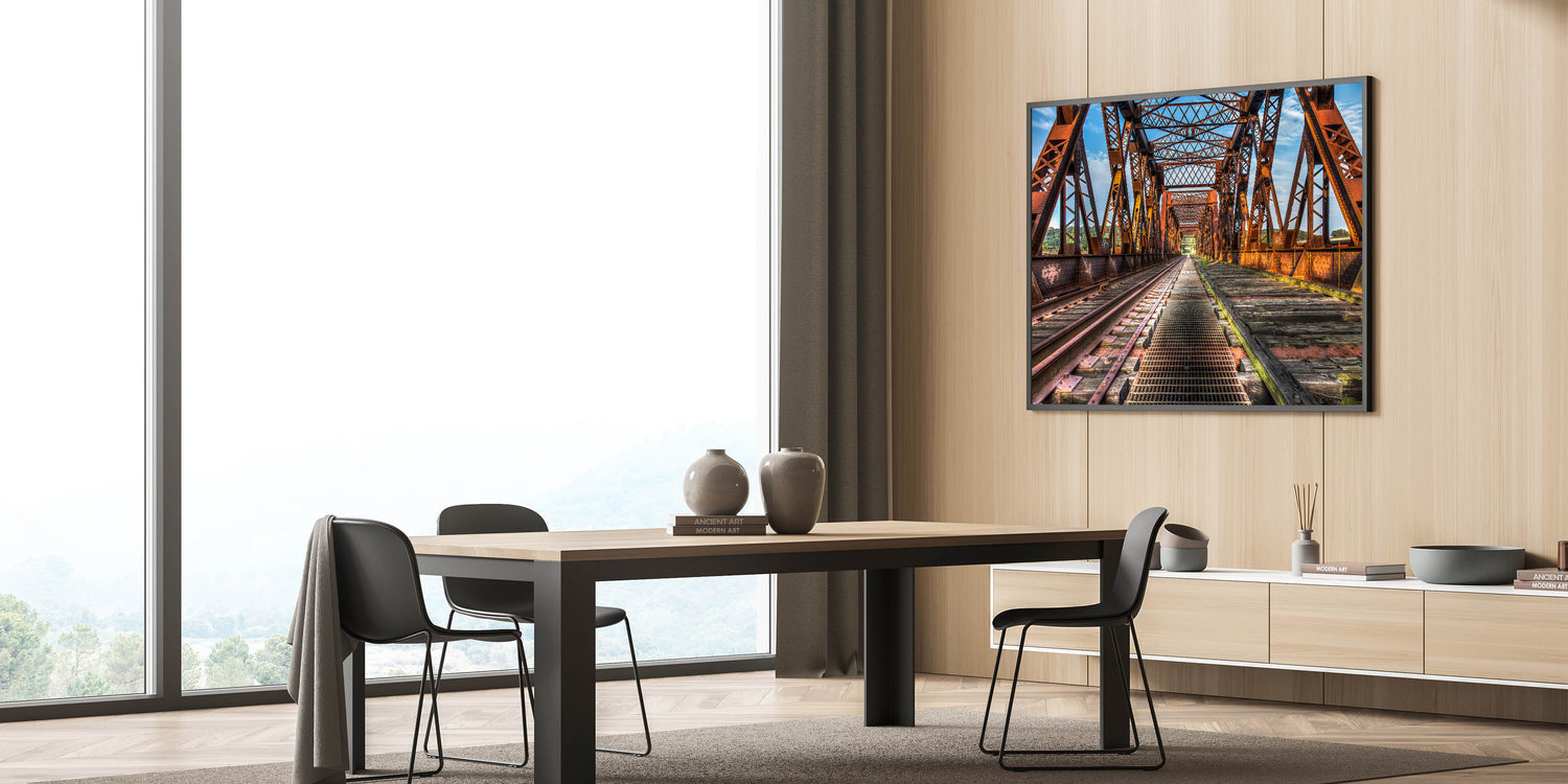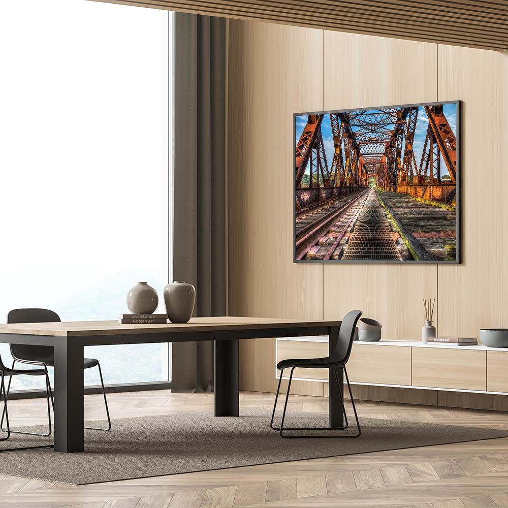 Elevate your space with this captivating piece of Connecticut landscape art. Whether you’re a fan of Connecticut photography or simply want to add a rustic, industrial charm to your walls, this bridge artwork offers the perfect blend of style and elegance.