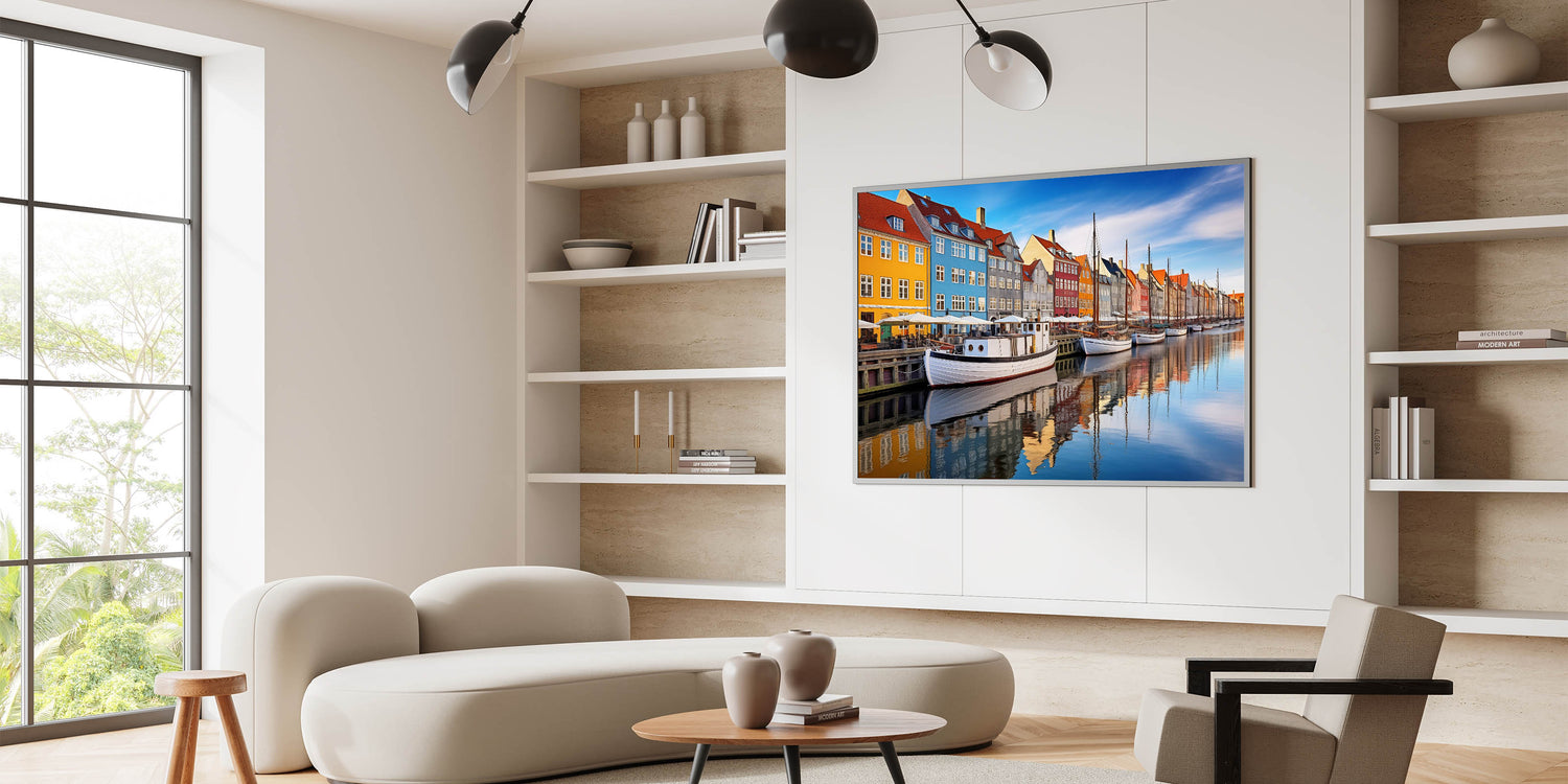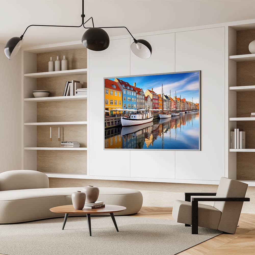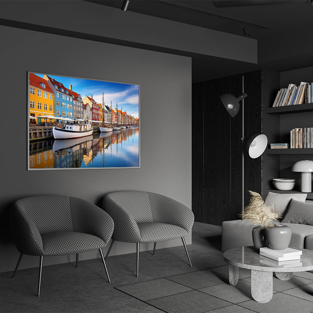 This Copenhagen canvas print celebrates the lively colors and reflections of one of Denmark’s most famous harbors. Whether you're decorating a modern or traditional space, this artwork will bring a sense of urban charm and Nordic beauty to your interior.
