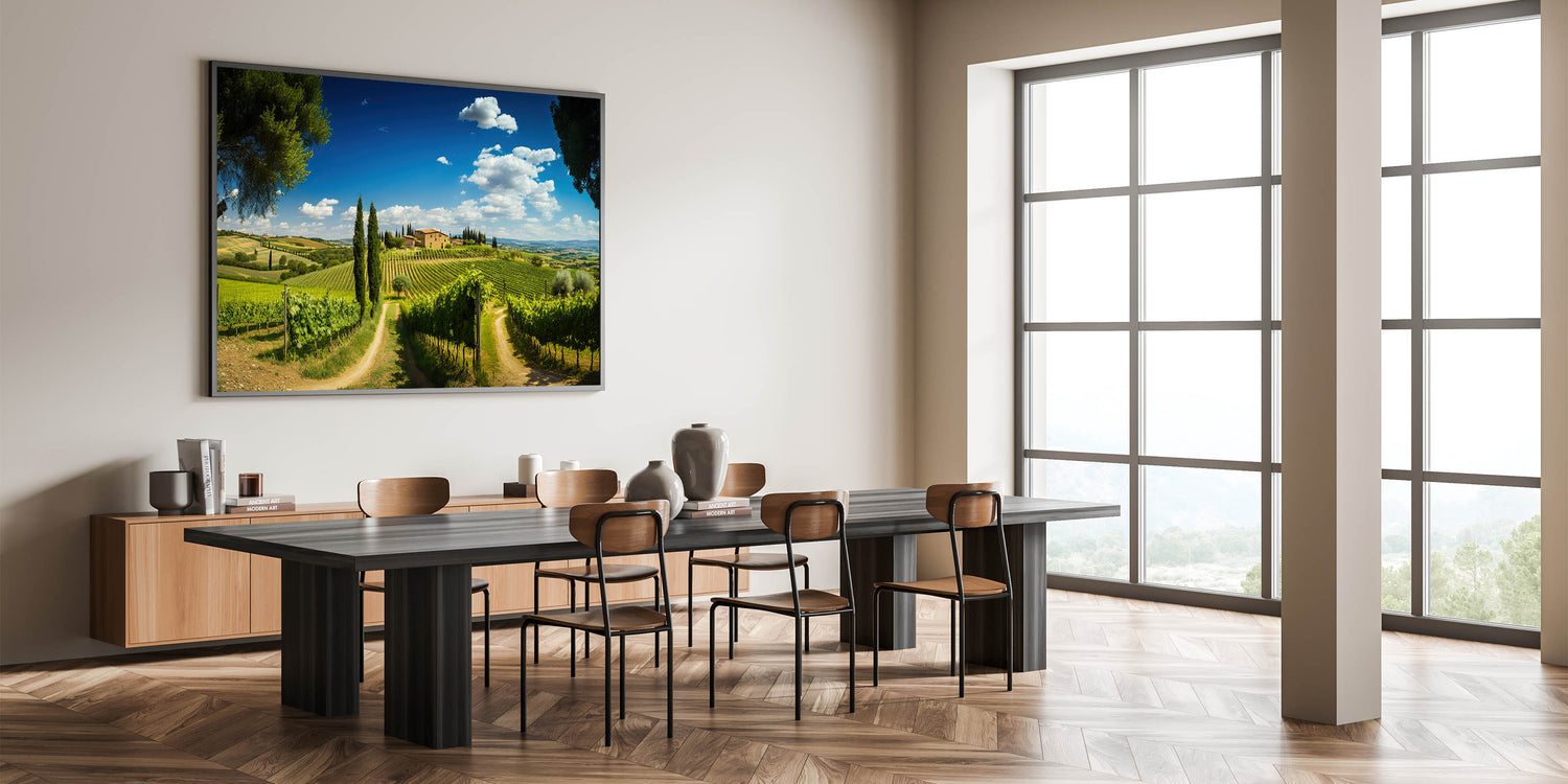 Transform your home into a peaceful retreat with this captivating countryside art print. Whether you’re looking to add warmth to your living space or bring a touch of rustic charm to your dining area, this piece is the perfect choice.
