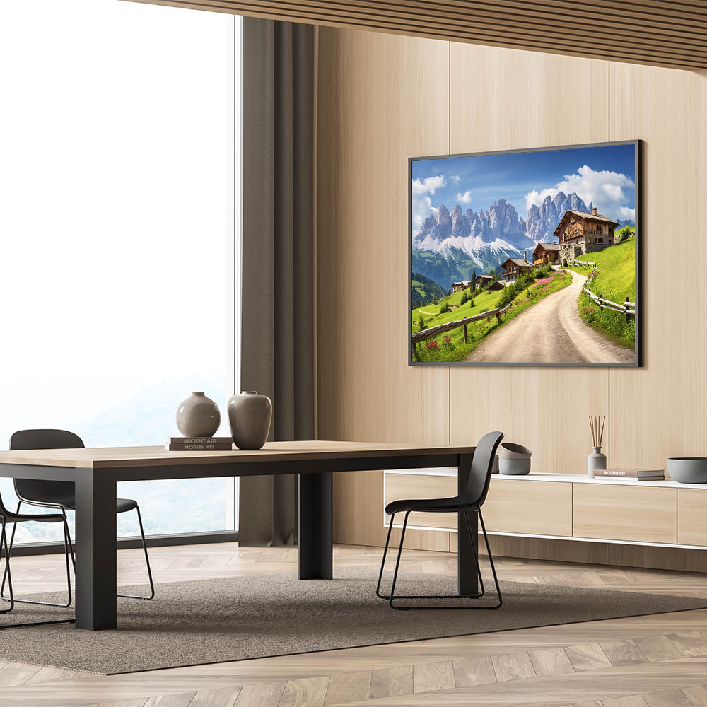 This mountain village wall art is more than just a piece of decor; it’s a window into a peaceful, idyllic world. Whether you’re looking to enhance your living room or bring a touch of rustic charm to your office, this artwork is the perfect choice.
