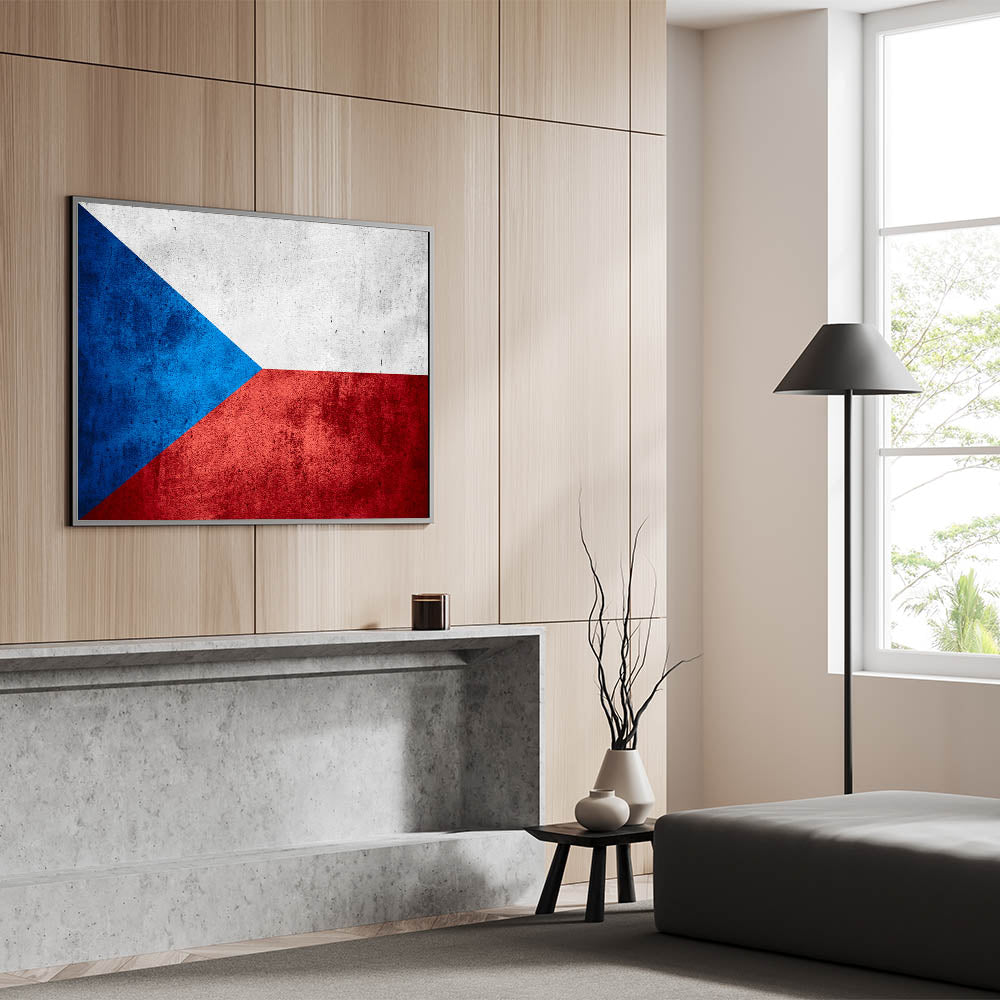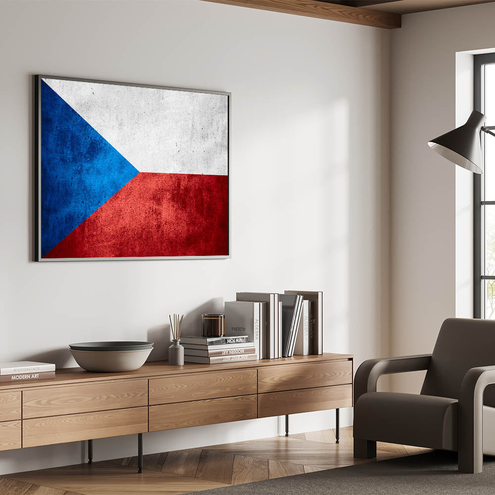 Celebrate the national pride of the Czech Republic with this bold and striking wall art, featuring the iconic Czech flag. This design showcases the vivid colors of blue, red, and white in a textured, rustic style, adding a unique flair to the traditional flag. Perfect for lovers of Czech Republic photography or those wanting to bring a patriotic touch to their decor, this piece stands out with its strong sense of national identity.