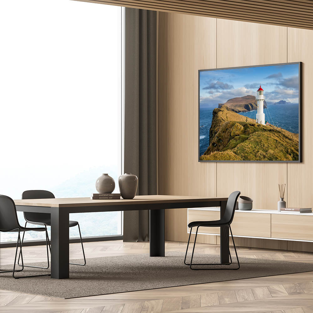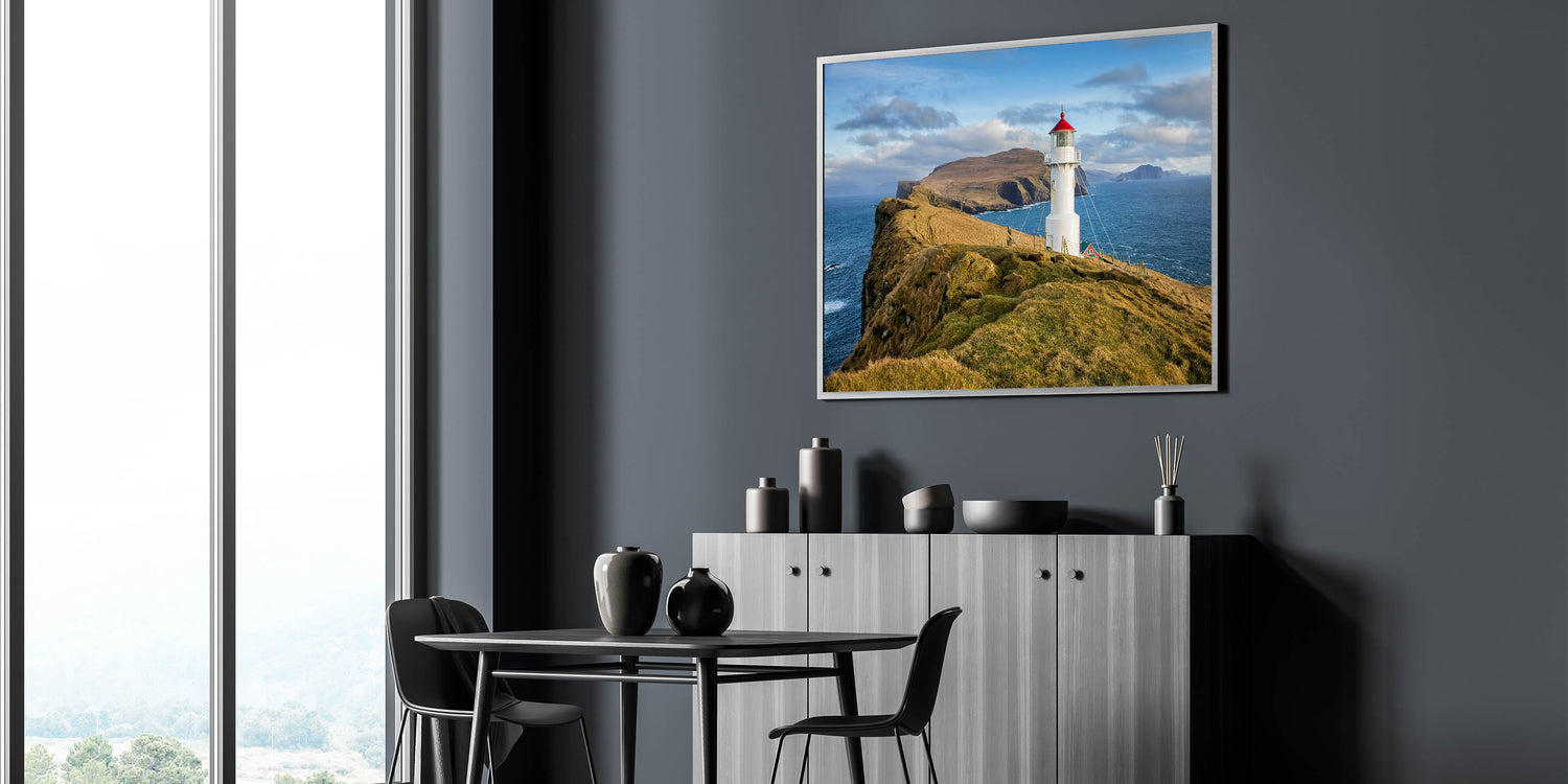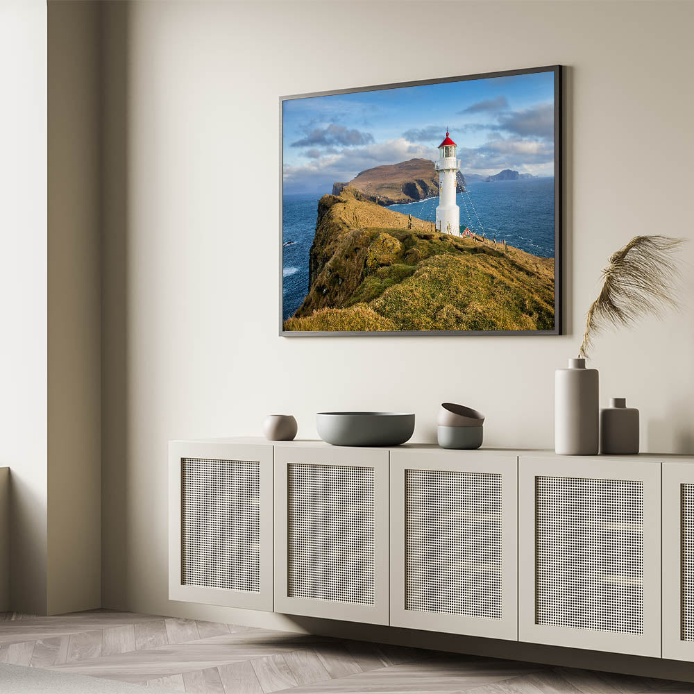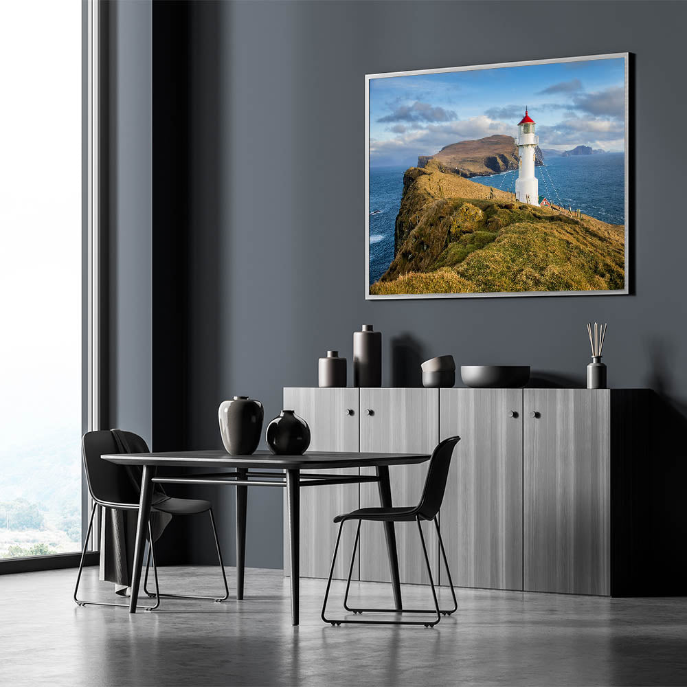 Experience the stunning natural beauty of Denmark with this mesmerizing Danish landscape painting featuring a scenic coastal lighthouse. The piece captures the tranquility of the Danish coastline, making it a perfect addition to your Nordic wall decor. The vivid Denmark photography highlights the rugged cliffs and the calm ocean, creating a timeless piece of Scandinavian decor that will transform any space.