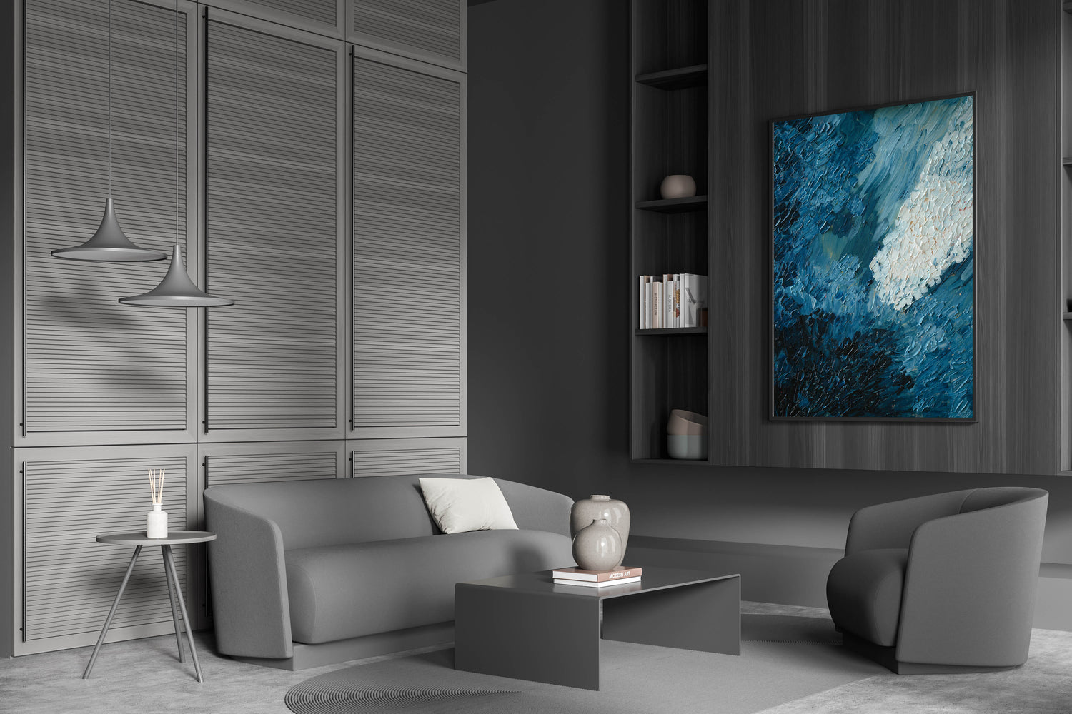 Immerse yourself in the depth of color and texture with this Deep Blue Abstract Textured Canvas. Featuring rich layers of deep blue and white, this artwork captures movement and energy through its bold brush strokes and intricate textures. The abstract design evokes a sense of mystery and depth, making it a perfect addition to contemporary and modern interiors. The tactile quality of the piece adds dimension and interest, creating a visually captivating focal point for any room.
