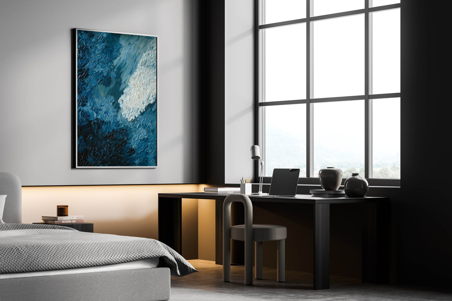 • Dynamic Color Palette: The combination of deep blue and white adds a bold and sophisticated touch to your decor.