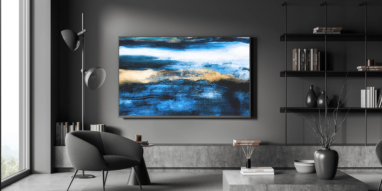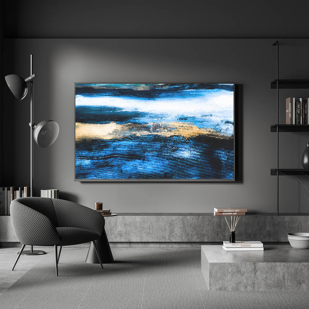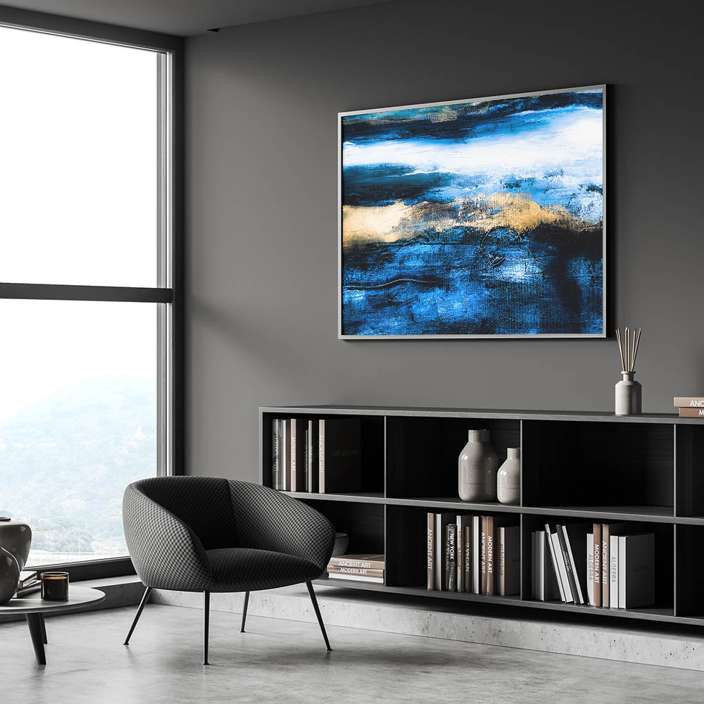 Add a touch of luxury and depth to your home or office with our Deep Blue and Gold Abstract Line Art Canvas. Order now and bring the beauty of high-quality abstract art into your space.