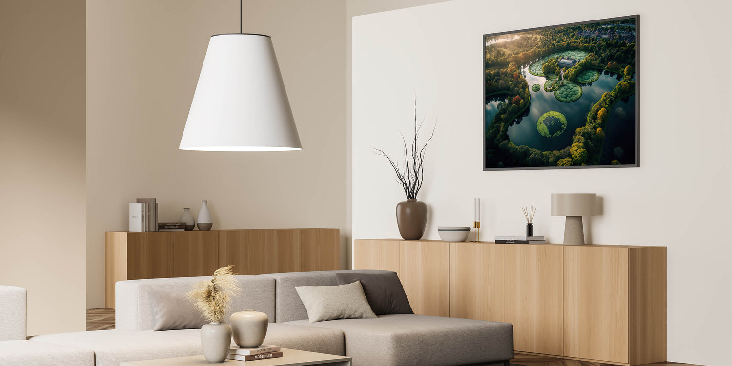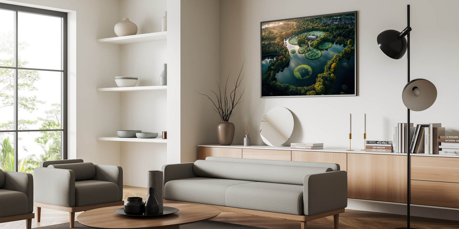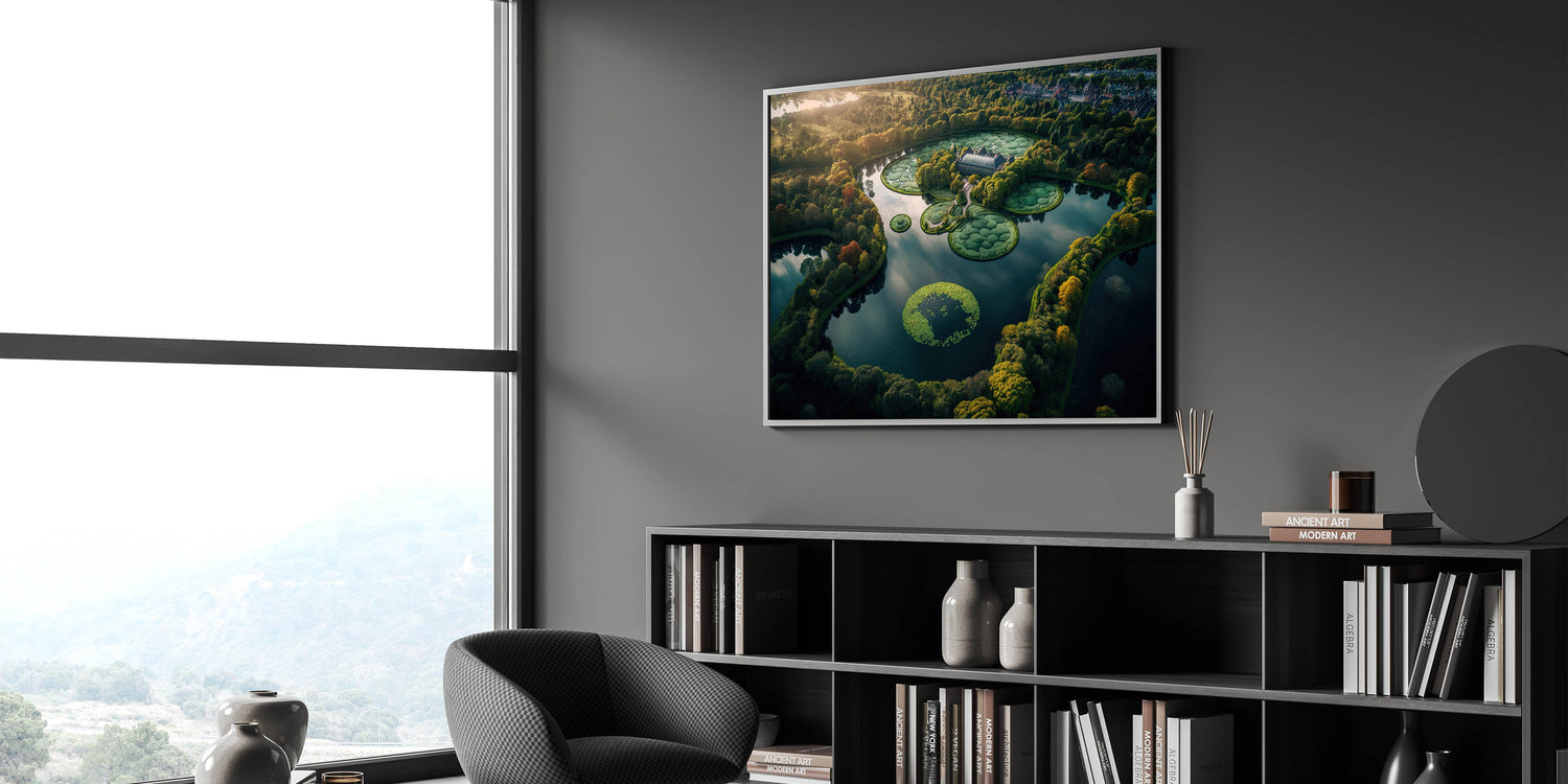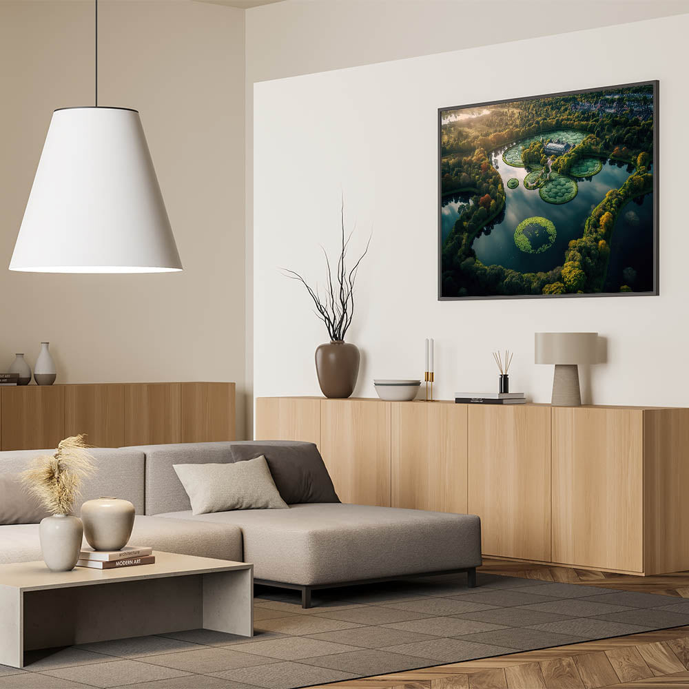 Experience the beauty of Denmark with this breathtaking aerial wall art showcasing a serene lake and intricate gardens. Captured from above, this scenic Denmark artwork highlights the peaceful harmony between nature and landscape design, offering a glimpse of the country’s scenic countryside. Perfect for those who appreciate Nordic wall decor, this piece reflects the timeless elegance of Scandinavian aesthetics.