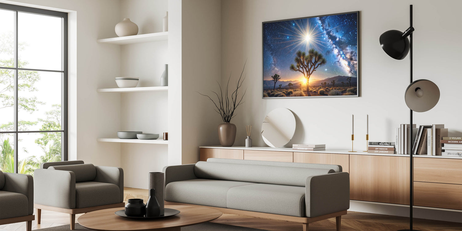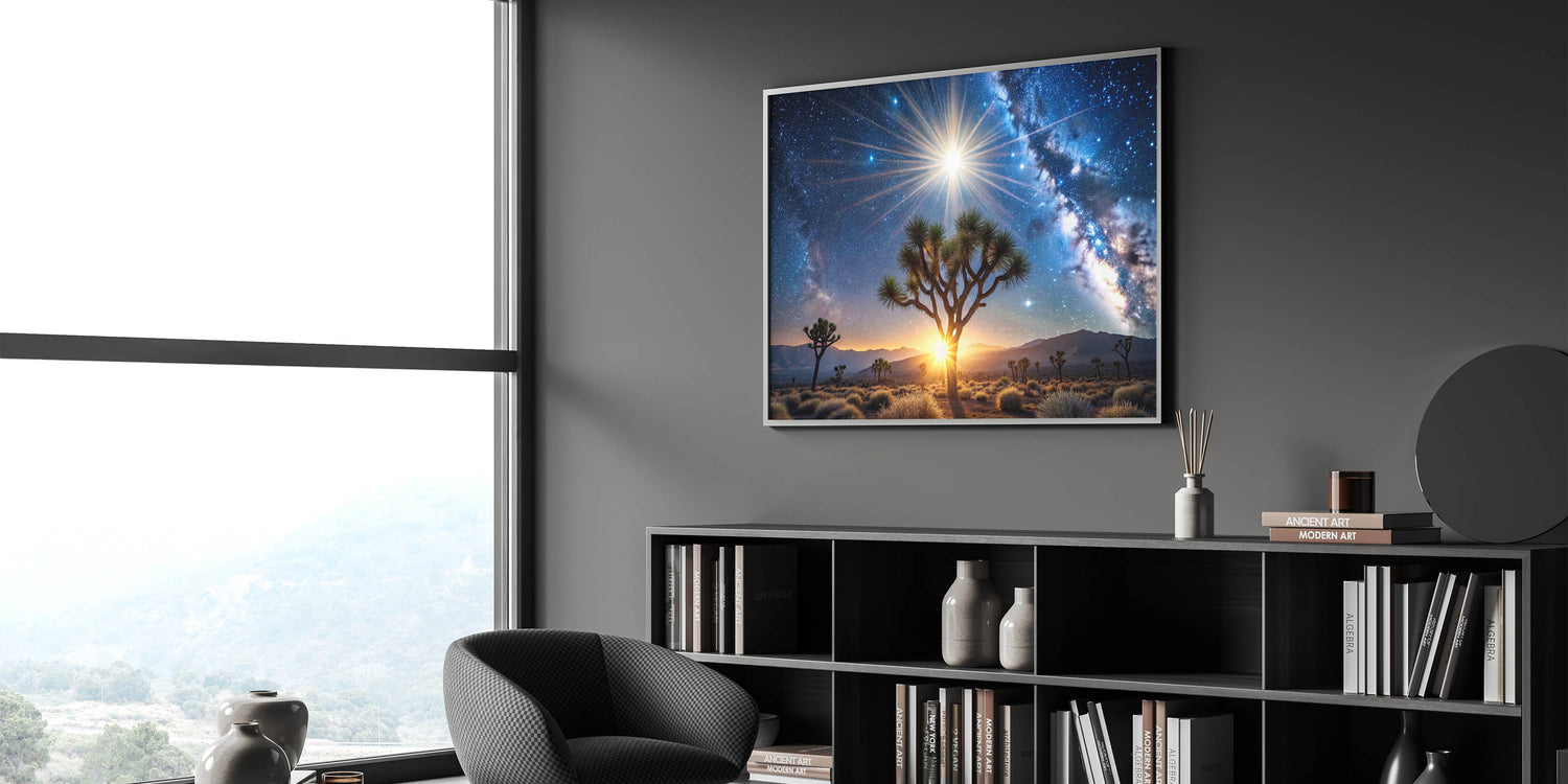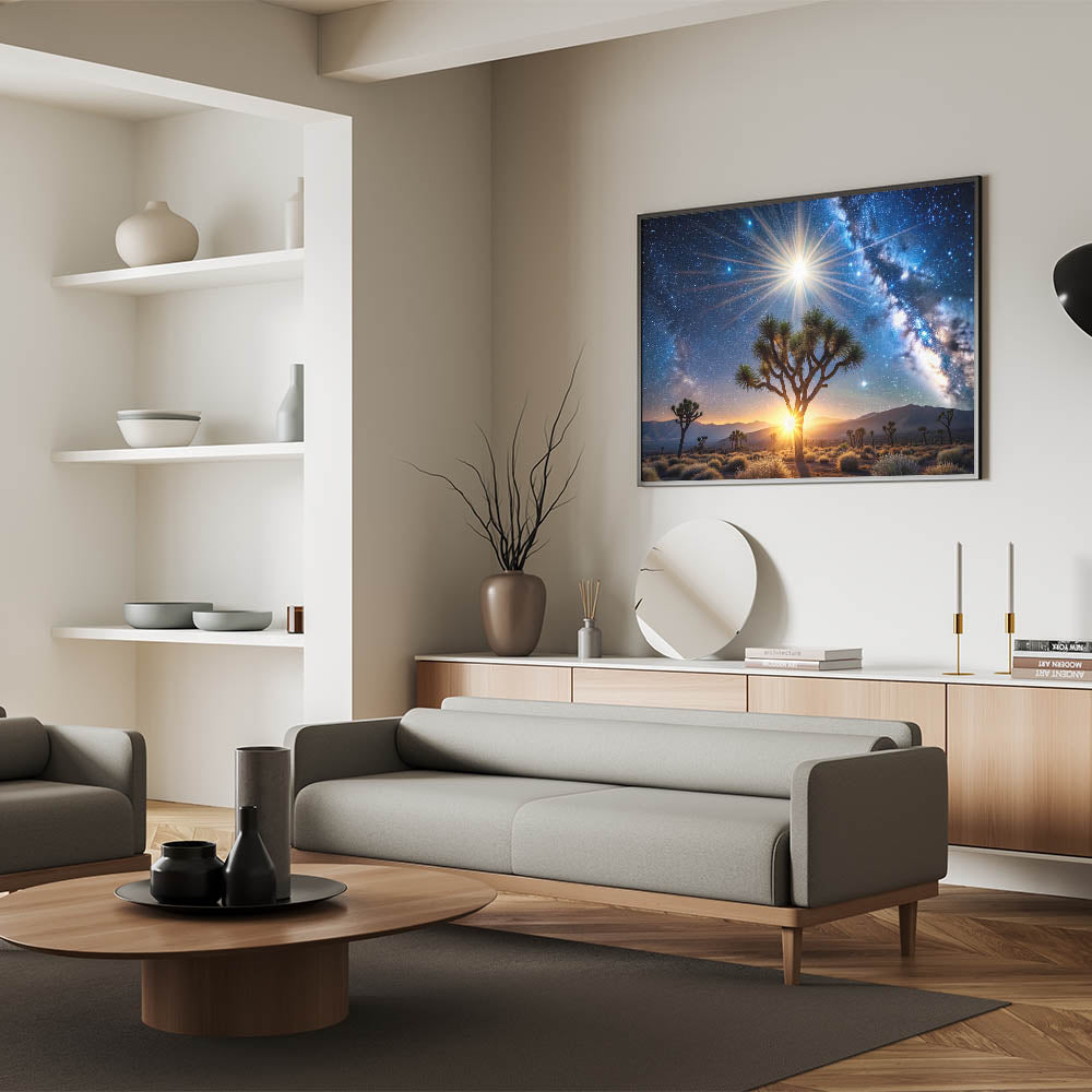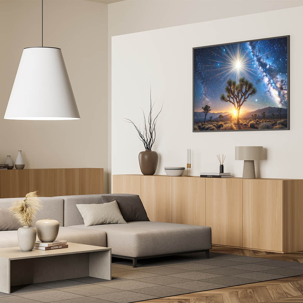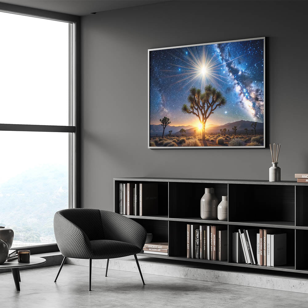 Add this stunning Sun Rolled Canvas Print to your space and bring the awe-inspiring beauty of the desert and the stars into your home. Whether framed or as a rolled canvas, this artwork will create an unforgettable focal point.