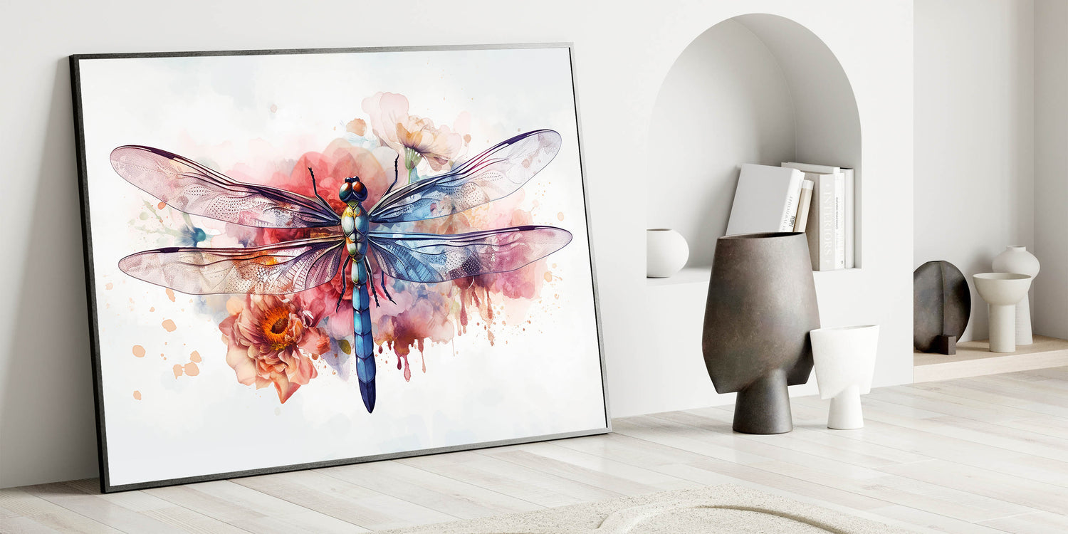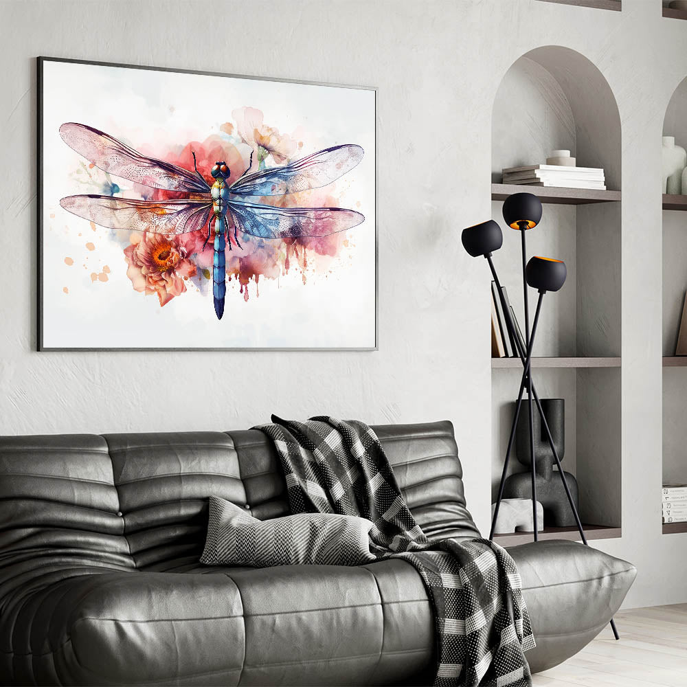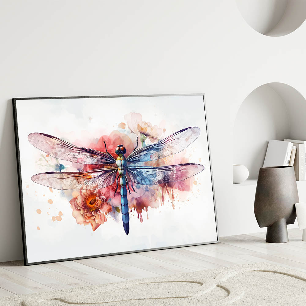 • Elegant Design: The floral watercolor backdrop enhances the graceful presence of the dragonfly, offering a visually stunning piece that complements both modern and traditional decor.