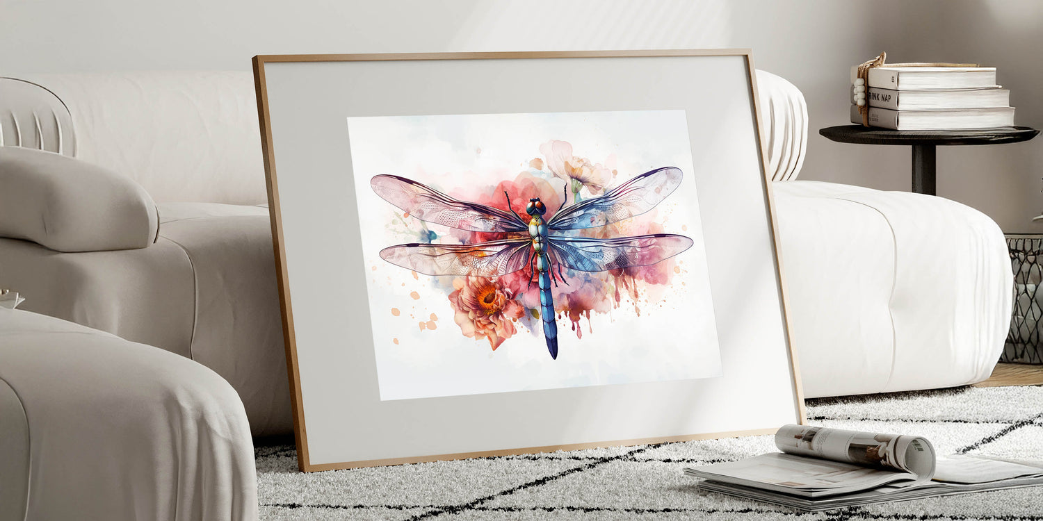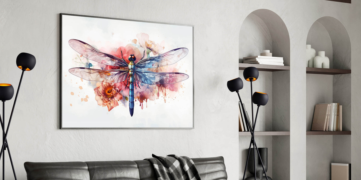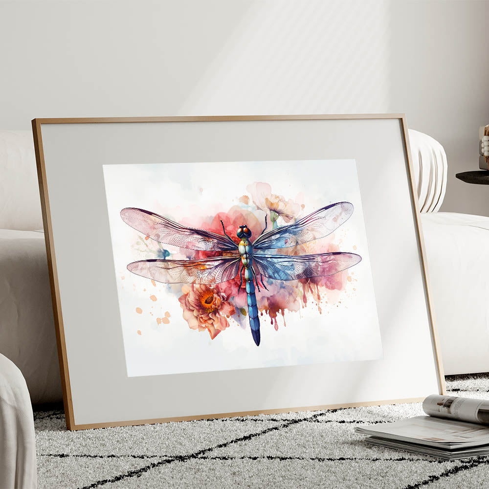 • Elegant Design: The floral watercolor backdrop enhances the graceful presence of the dragonfly, offering a visually stunning piece that complements both modern and traditional decor.