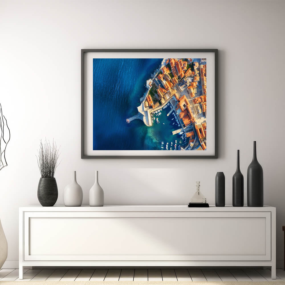 Explore the timeless beauty of Dubrovnik with our "Historic Adriatic Harbor View," a standout piece in our Croatian Landscape Art collection. This aerial photograph captures the majestic essence of Dubrovnik’s old town, surrounded by the stunning azure waters of the Adriatic Sea, illustrating a harmonious blend of history and nature.