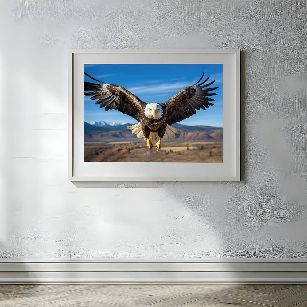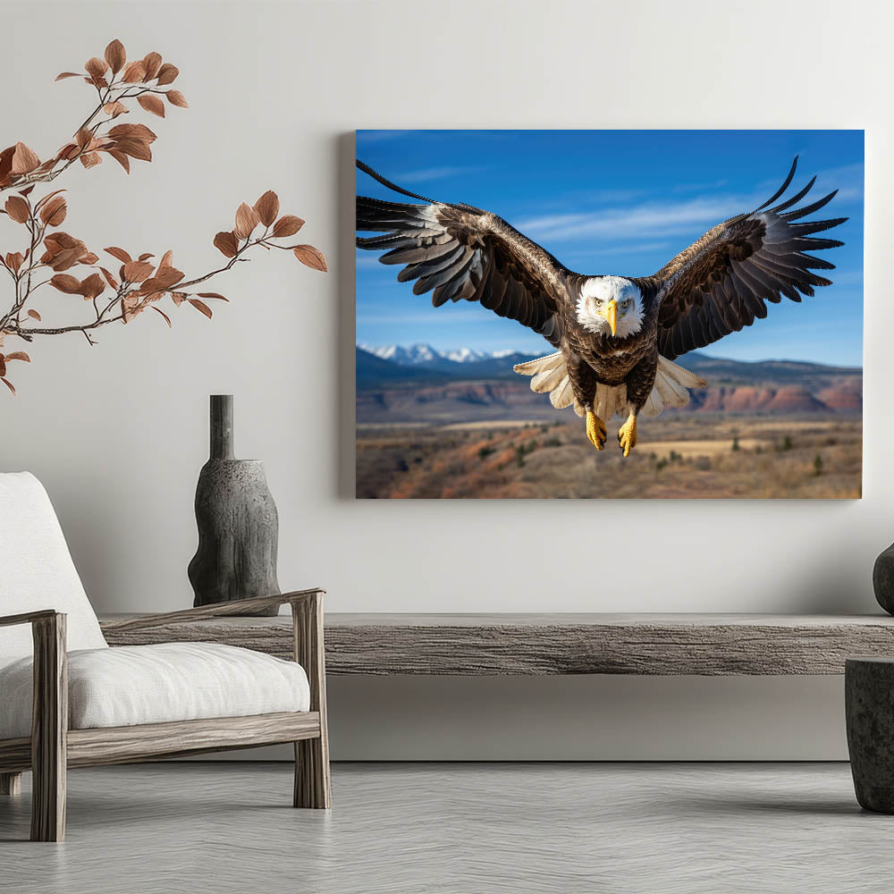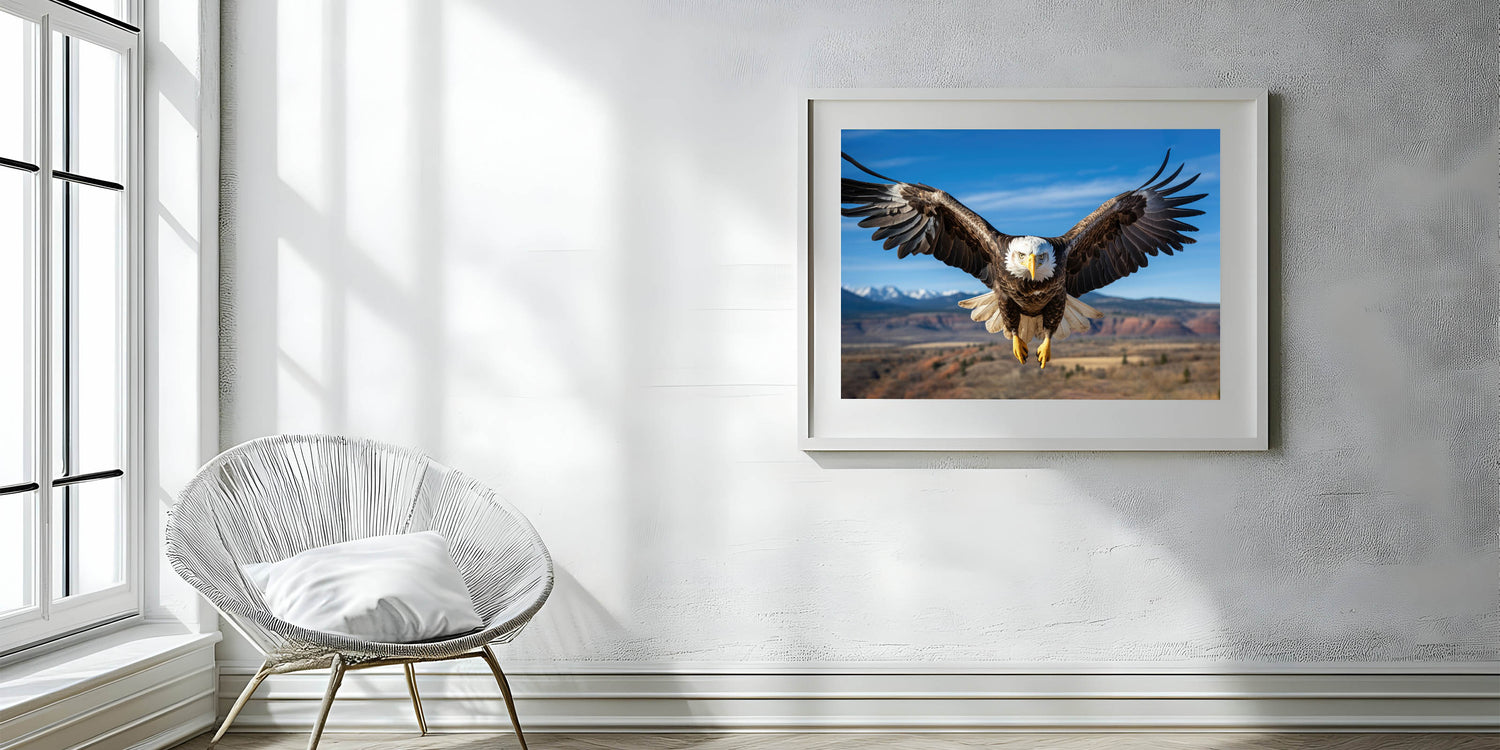 This stunning birds of prey wall art is perfect for those who appreciate the wild beauty of nature. The high-quality bald eagle photograph serves as an inspiring focal point in any living room, office, or study, adding a touch of nature's grandeur to your home.