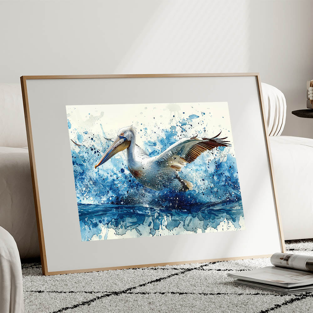 Dynamic Splash Pelican Art - Vibrant Pelican Decor for Modern Homes