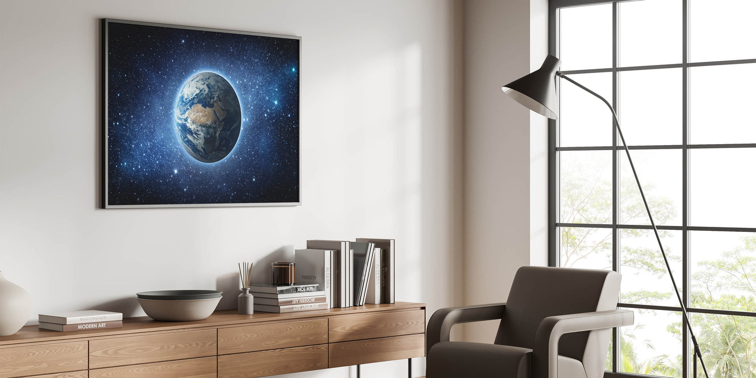 Earth in the Cosmos Wall Art - Stunning Space and Stars Decor Print