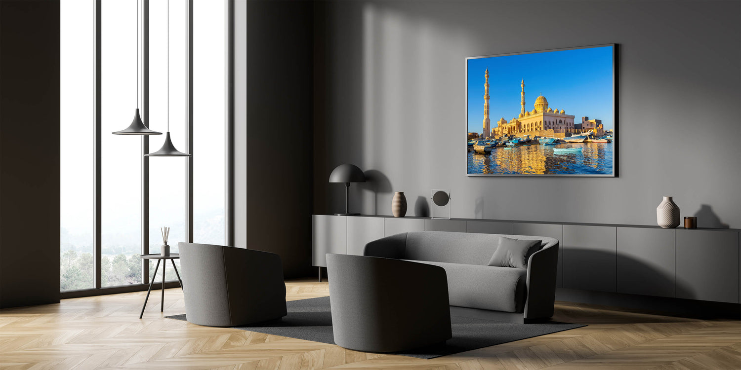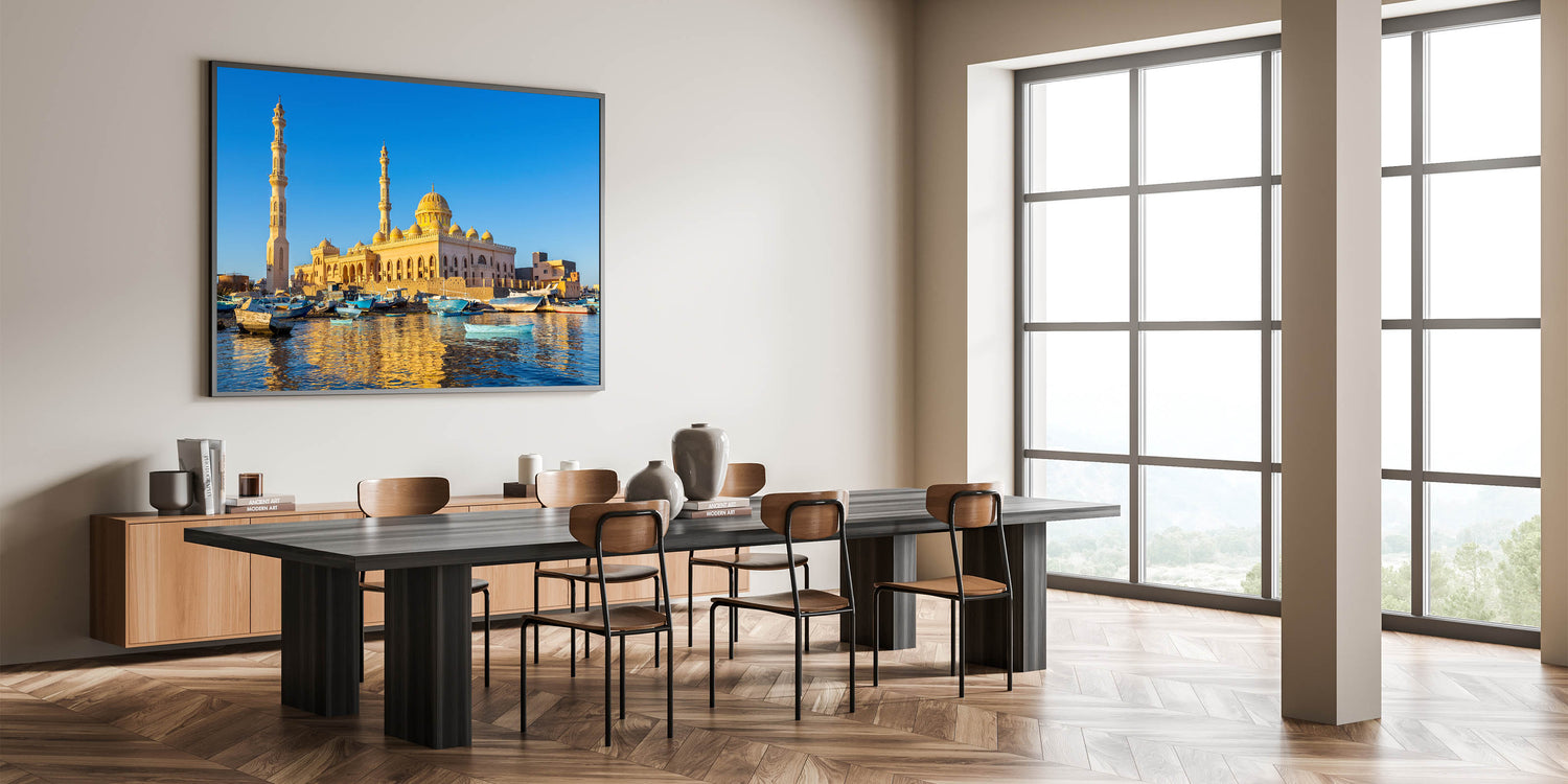 - Vibrant and Detailed: The intricate details of the mosque’s architecture and the vibrant reflections in the water are captured in high-definition, making this artwork a captivating focal point.
