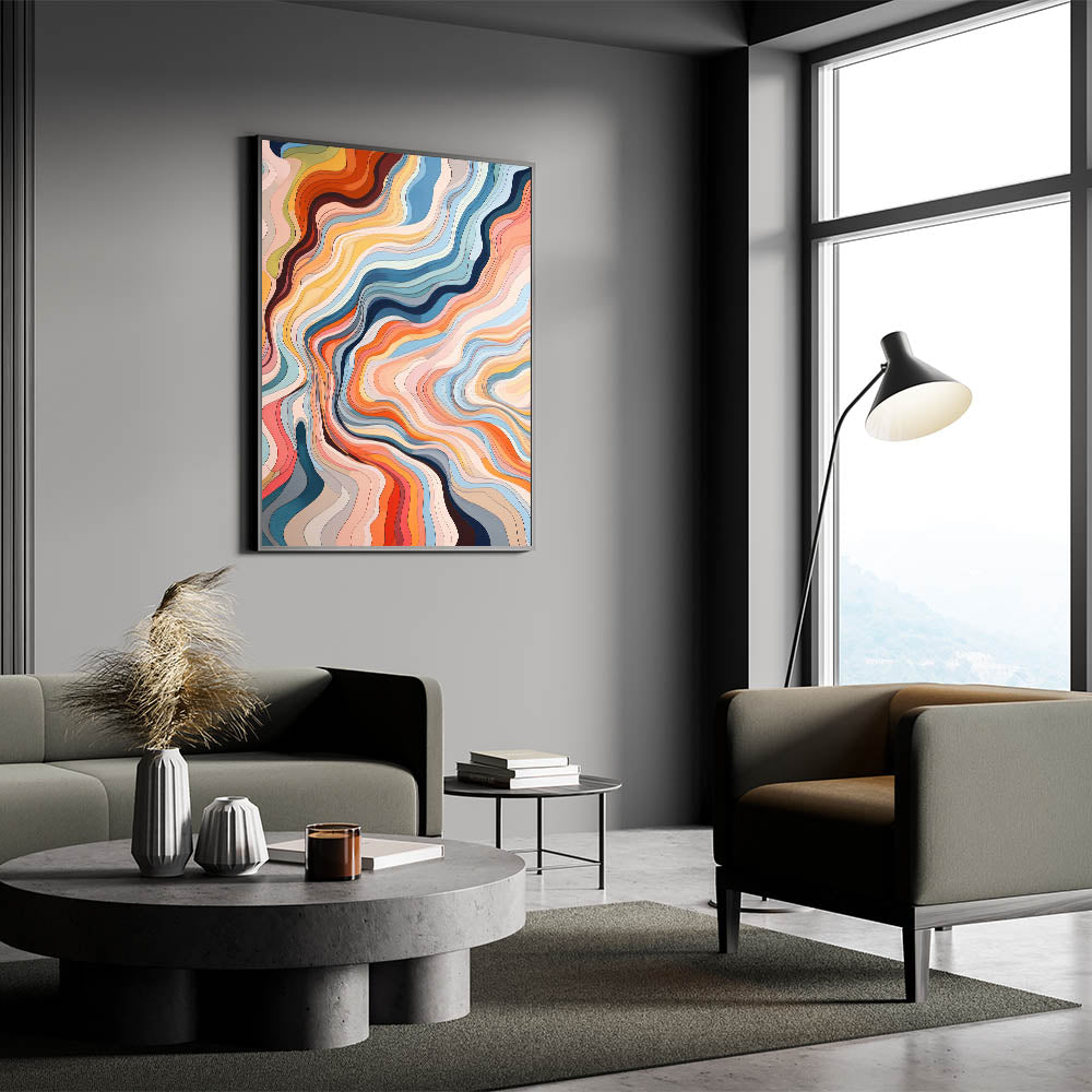 Brighten up your space with this stunning electric wall art featuring a dynamic abstract swirl of vibrant colors. This unique electric artwork combines flowing lines with a captivating array of shades, creating a mesmerizing visual experience. Perfect for living rooms, offices, or creative spaces, this modern electric design adds energy and movement to any room, making it an eye-catching centerpiece for contemporary interiors.