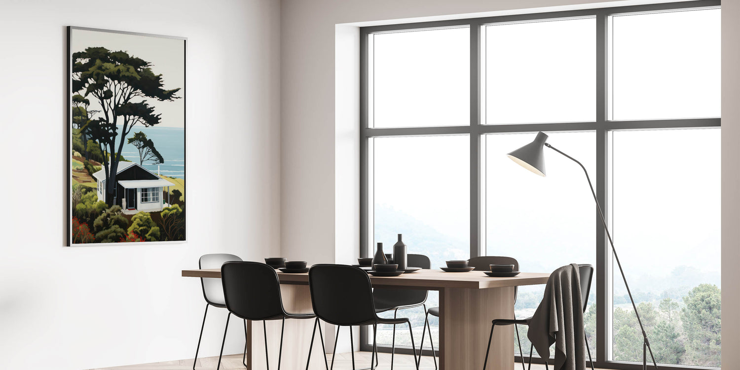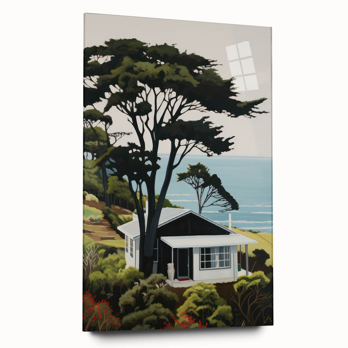 Embrace the charm of nature and modern design with this electric wall art, featuring a vibrant hillside cabin scene overlooking the ocean. This bold and dynamic electric artwork effortlessly combines natural beauty with modern decor, creating a stunning focal point for any room. Perfect for living rooms, bedrooms, or offices, this colorful electric wall decor brings a serene yet vibrant energy to your home.