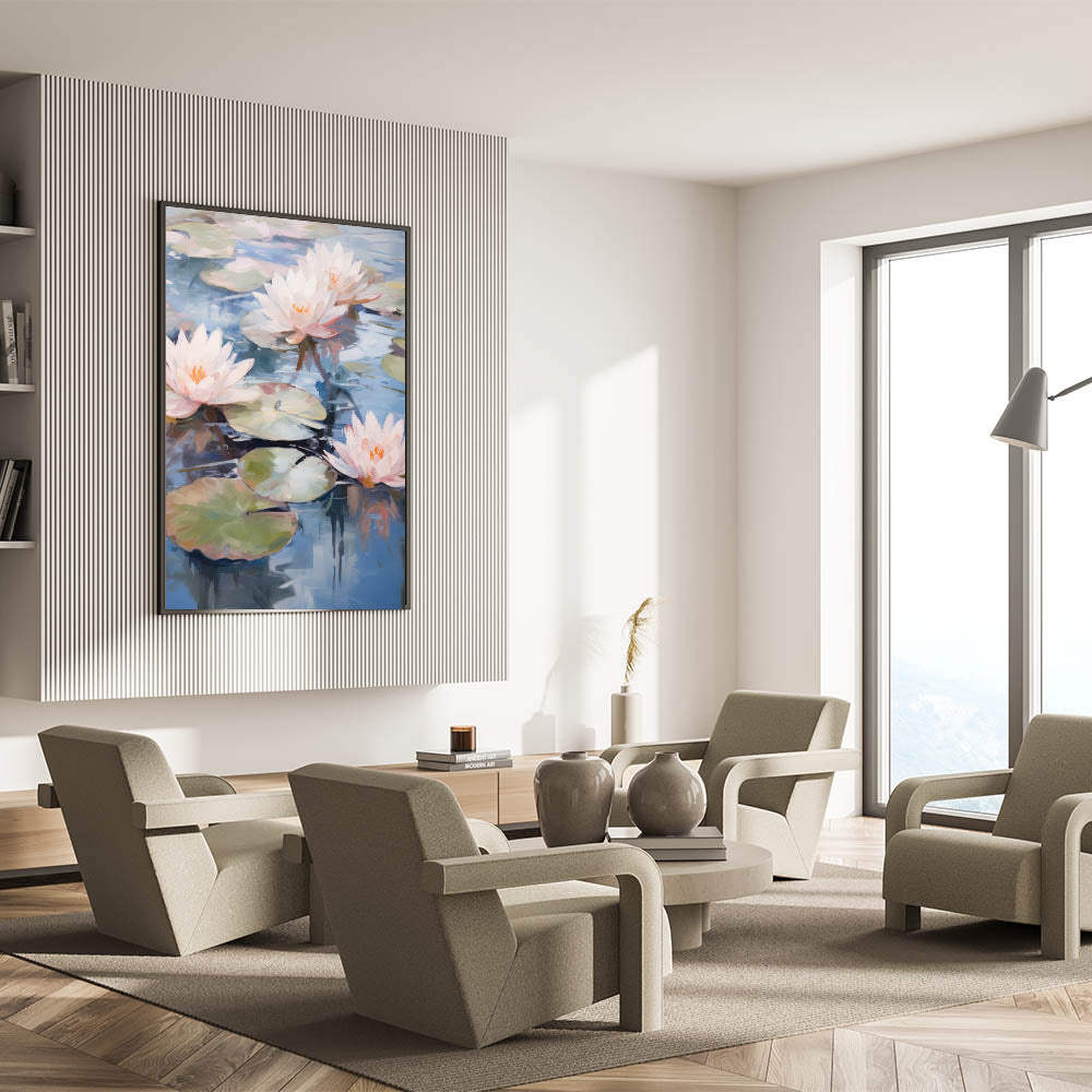 Electric Water Lily Wall Art - Tranquil Pond Scene with Soft Pastel Hues