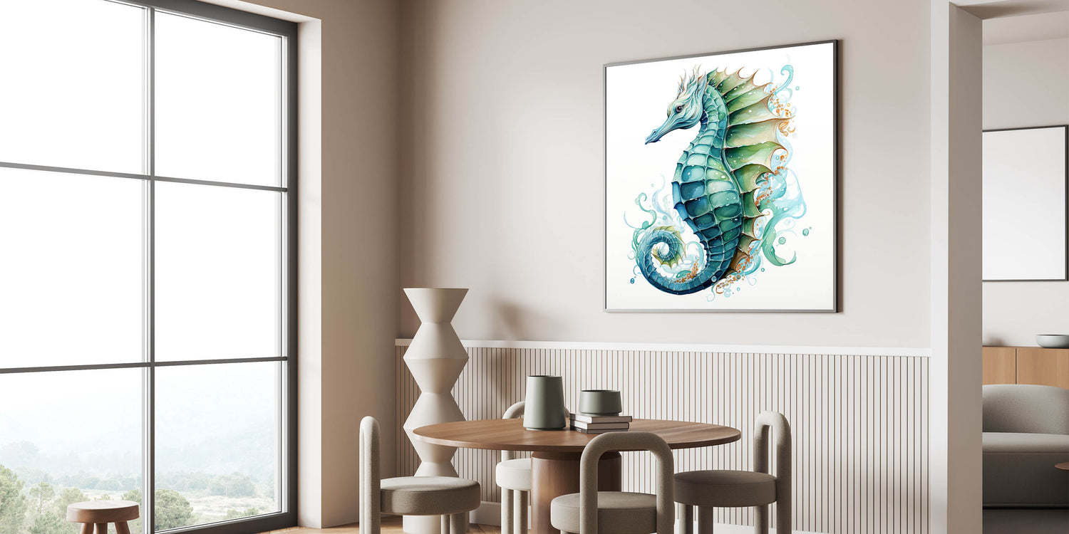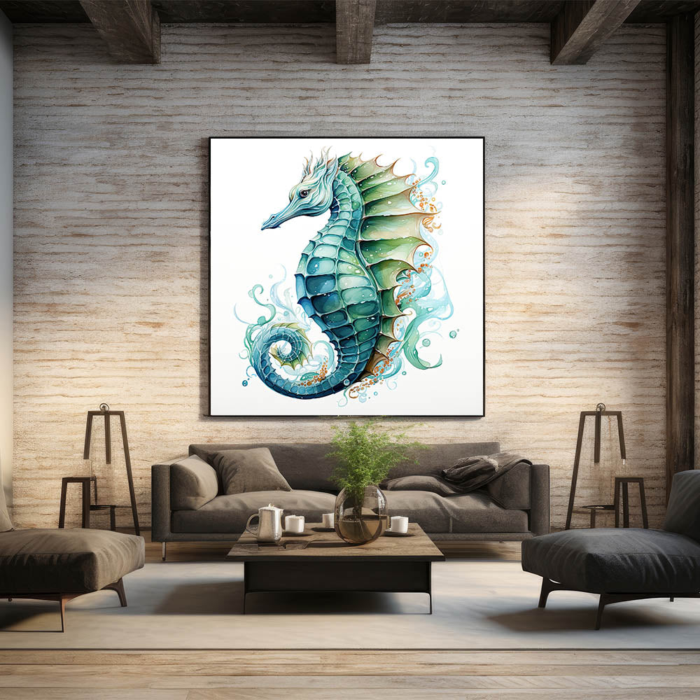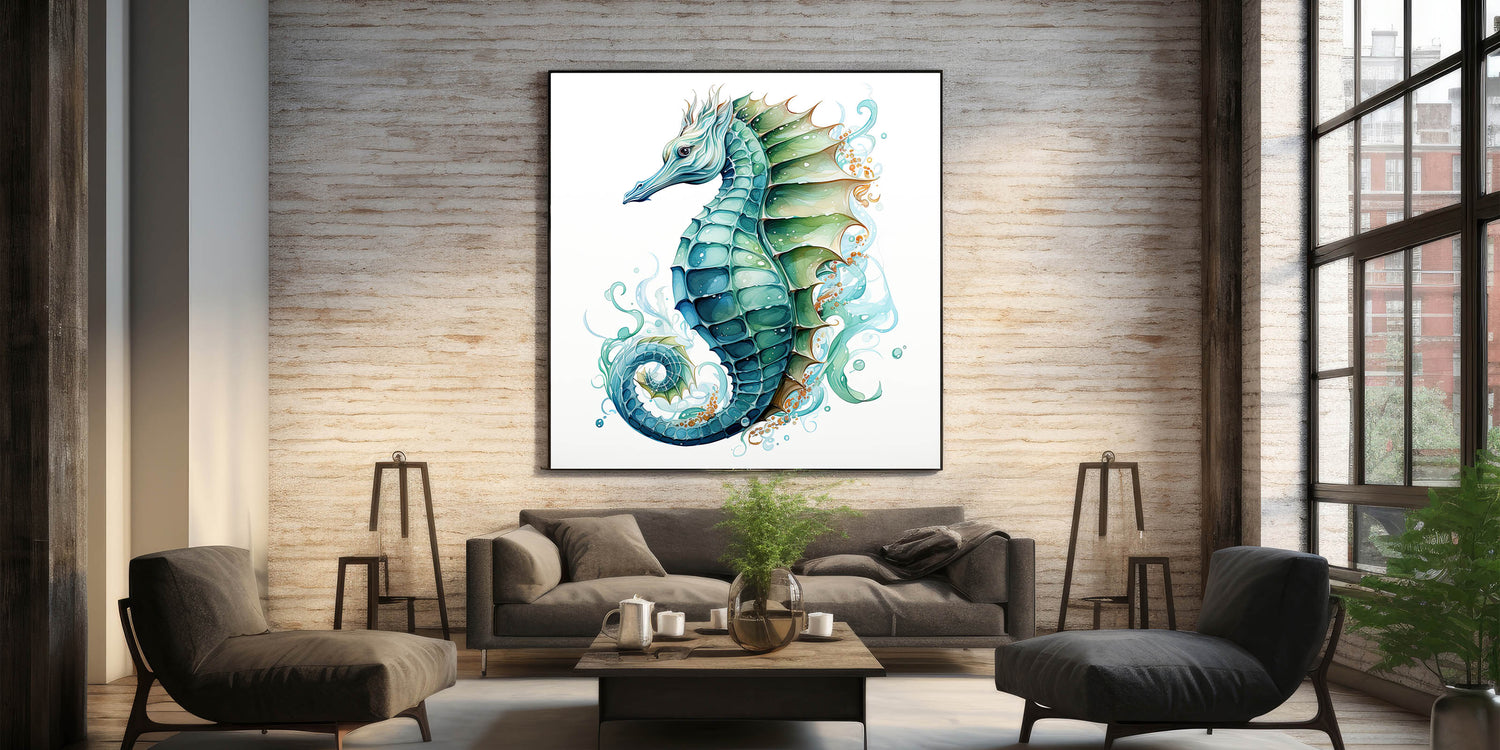 This seahorse canvas print is more than just an artwork; it's a gateway to the calm and beauty of the underwater world. Whether you're decorating a coastal-themed room or simply looking to add a unique and elegant element to your space, this piece is sure to impress.