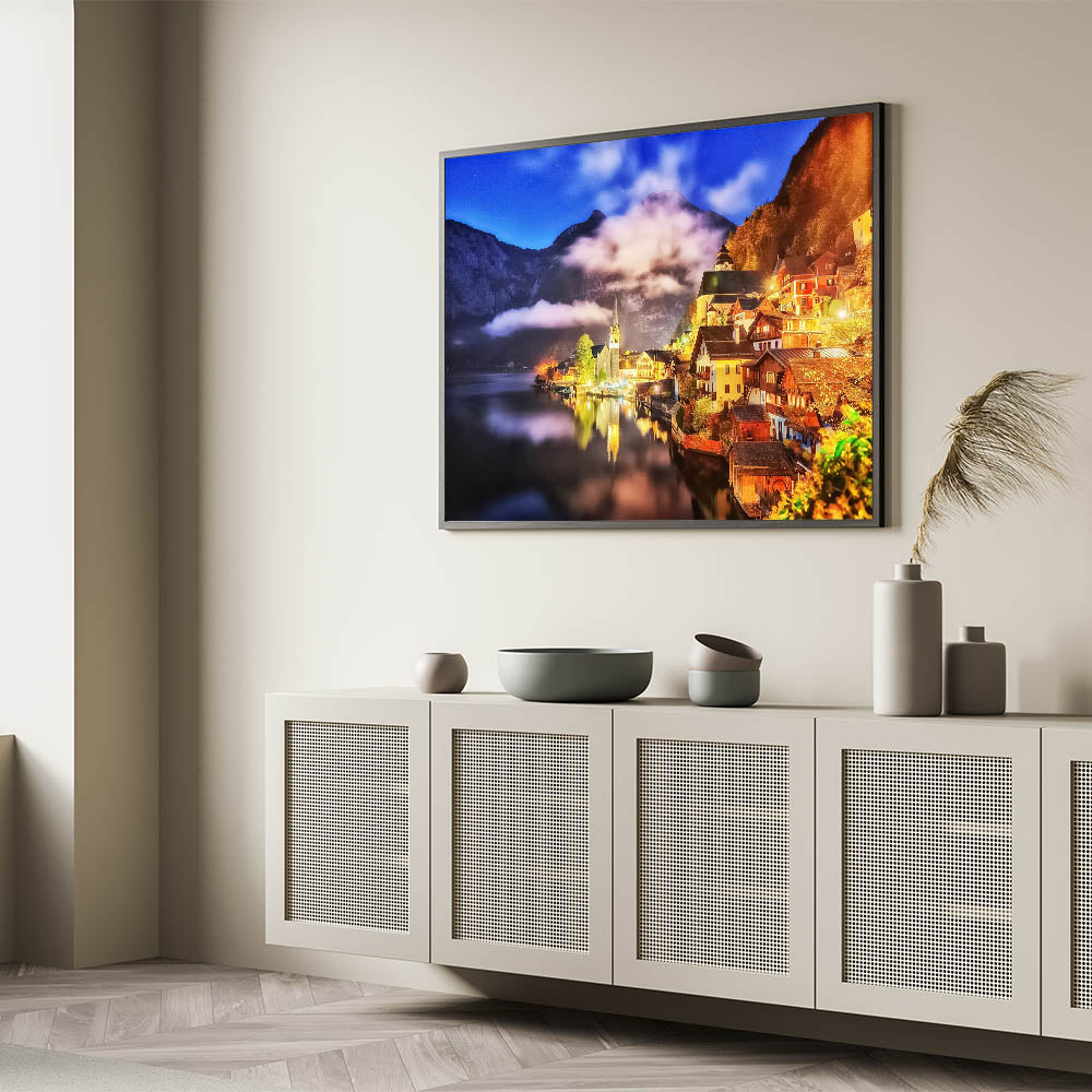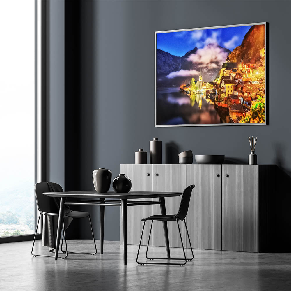 This village scene wall decor is perfect for those who appreciate the beauty of alpine landscapes and the tranquility of a quiet night. Whether placed in a living room, study, or bedroom, this idyllic village canvas print will bring a sense of calm and enchantment to your home.