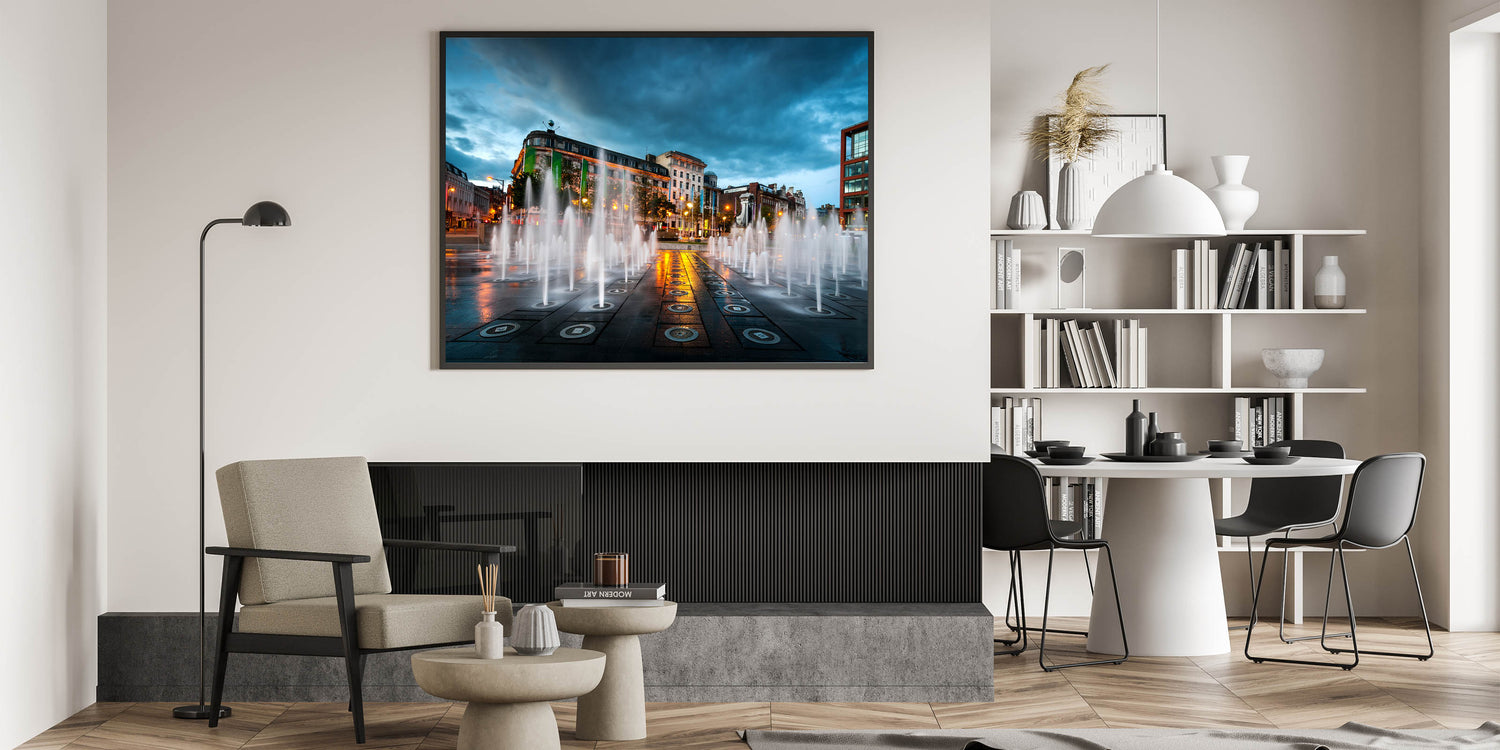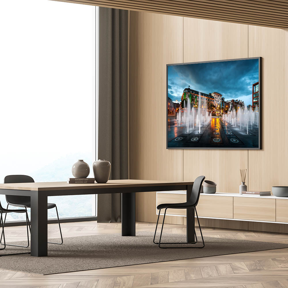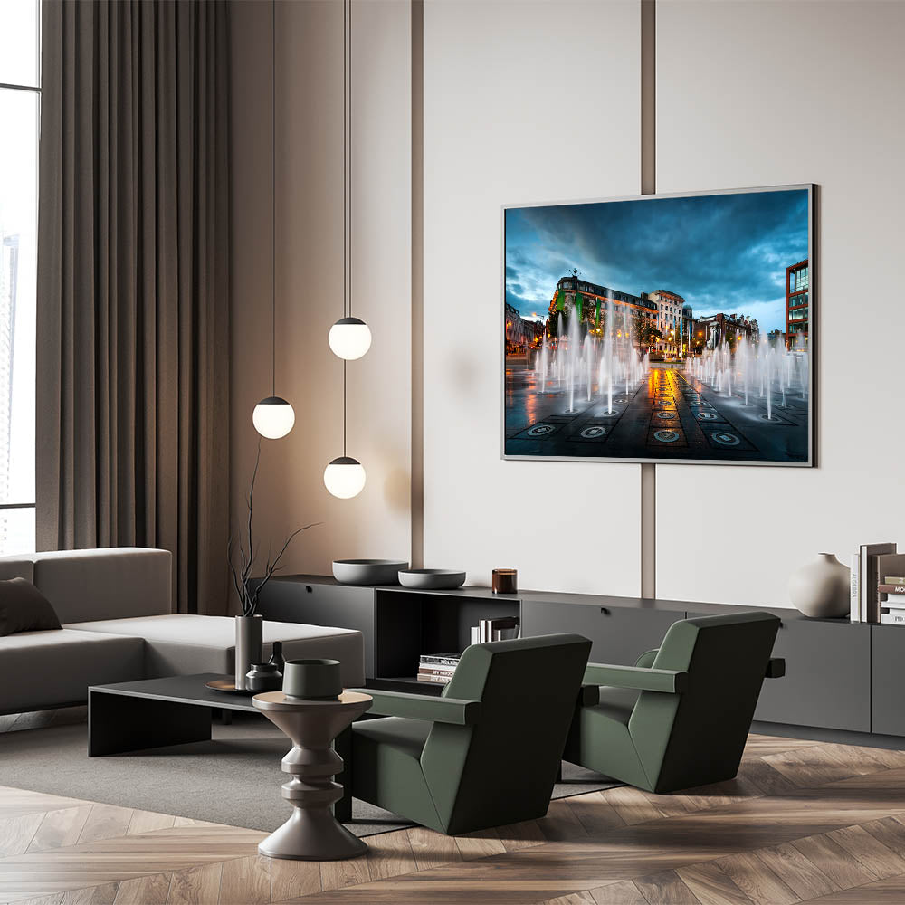 • Premium quality materials: Available in stretched canvas, framed canvas, acrylic glass, framed acrylic glass, framed print, rolled canvas, and rolled print.