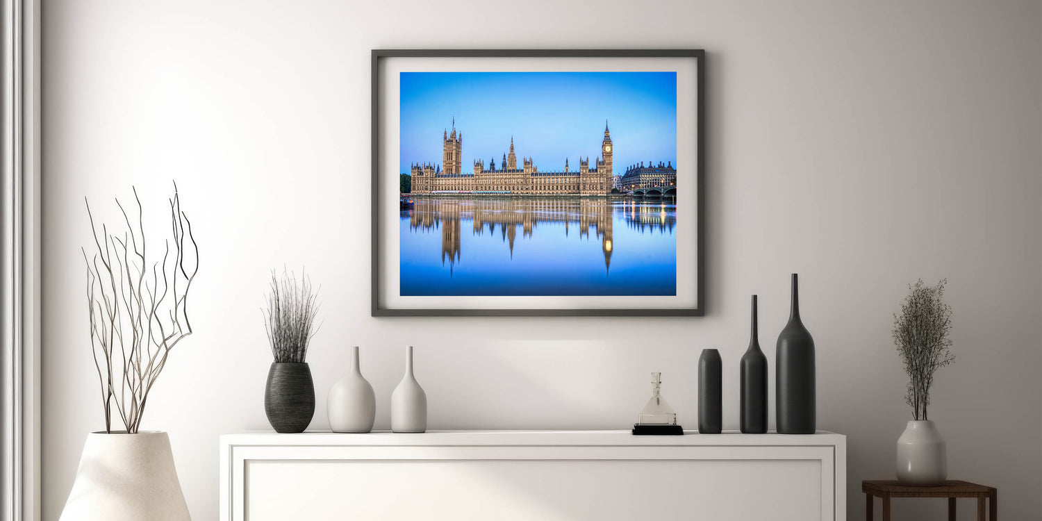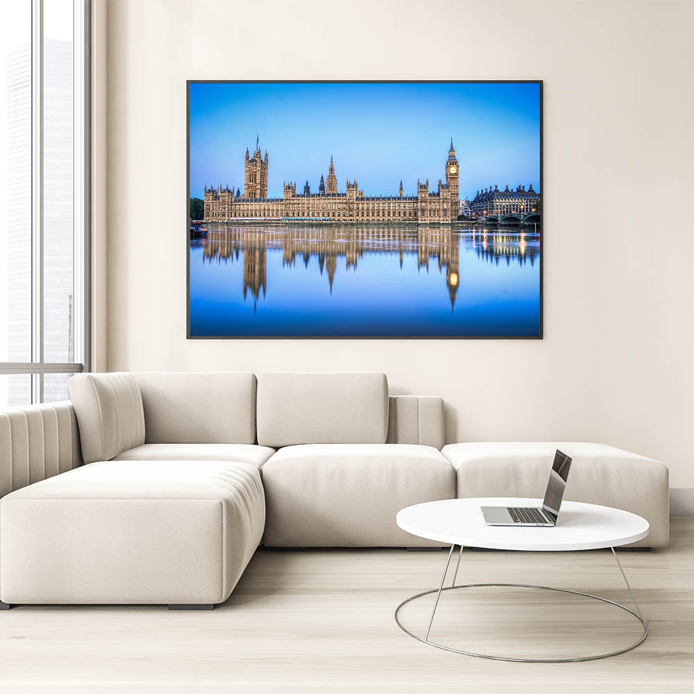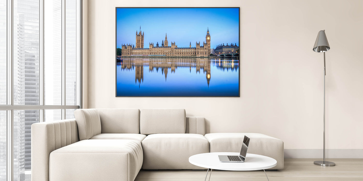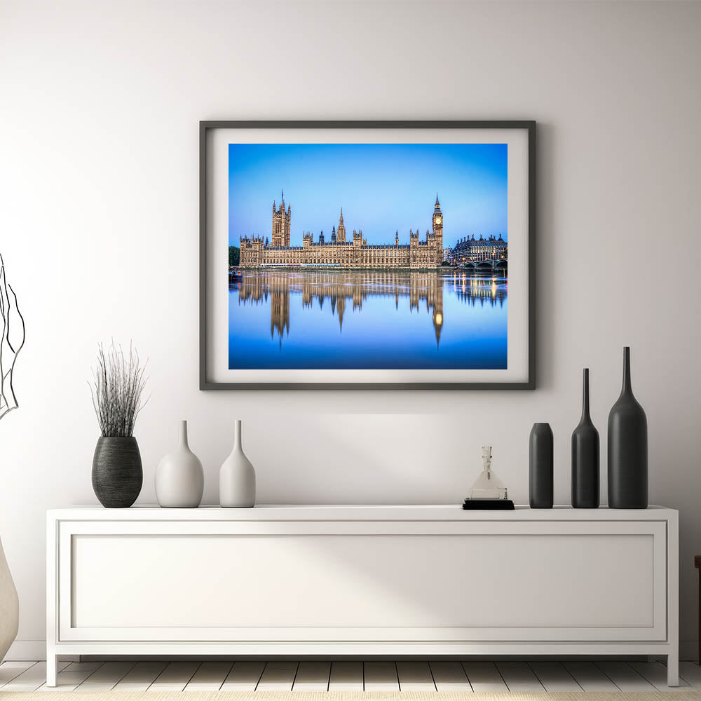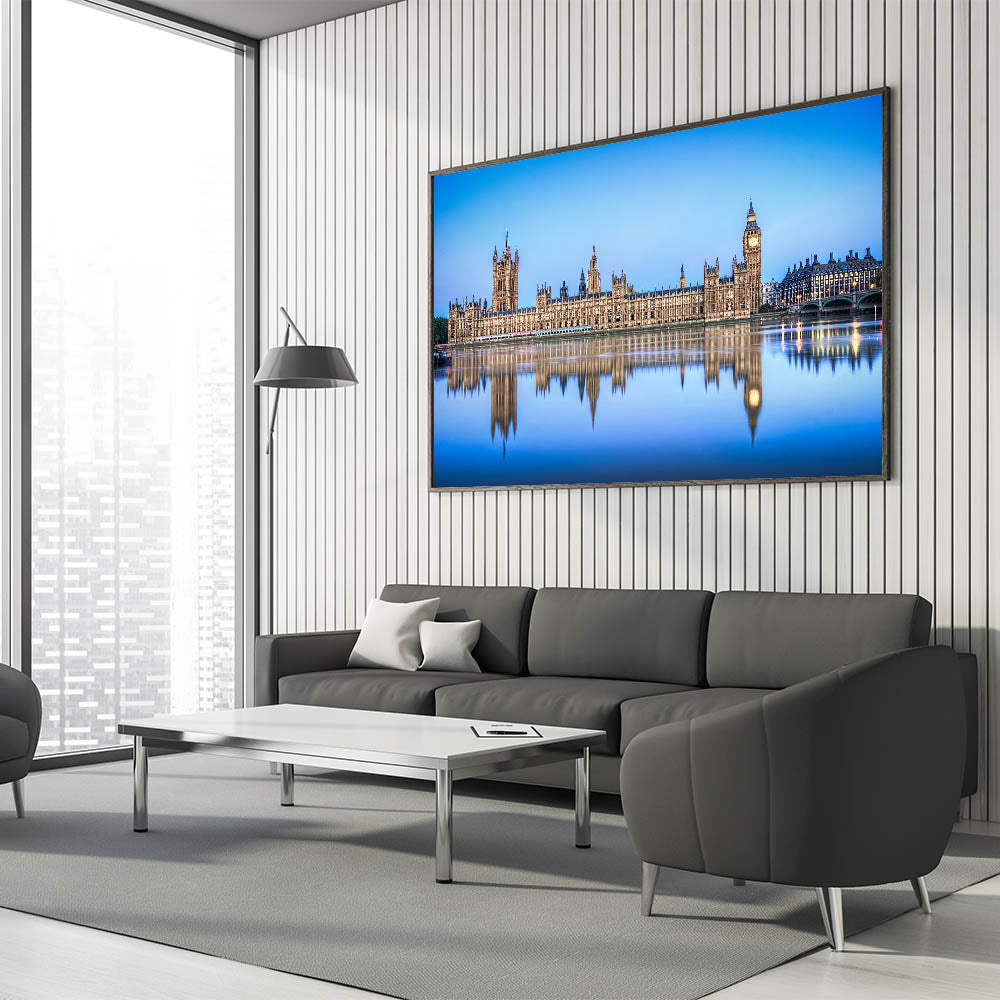 Bring a piece of British heritage into your space with this England Scenic Art featuring the Houses of Parliament and Big Ben reflected perfectly in the serene waters of the River Thames. This magnificent artwork is part of our Thames Canvas Prints collection, offering a timeless view of London's most iconic landmarks. Perfect for adding a touch of elegance to your decor, this piece is available in a variety of premium formats.