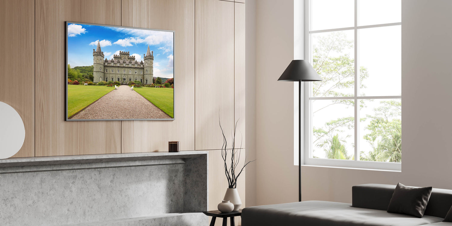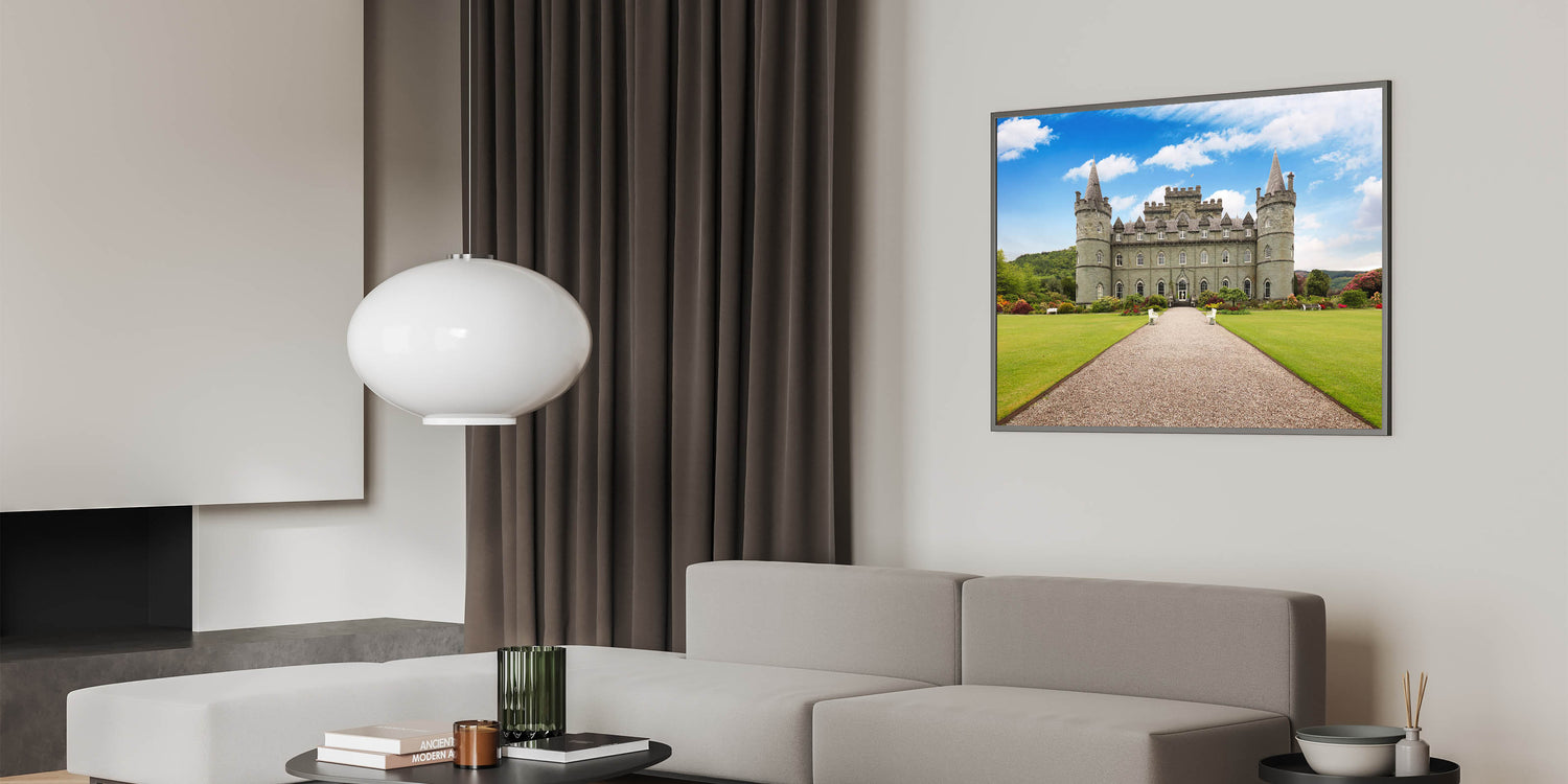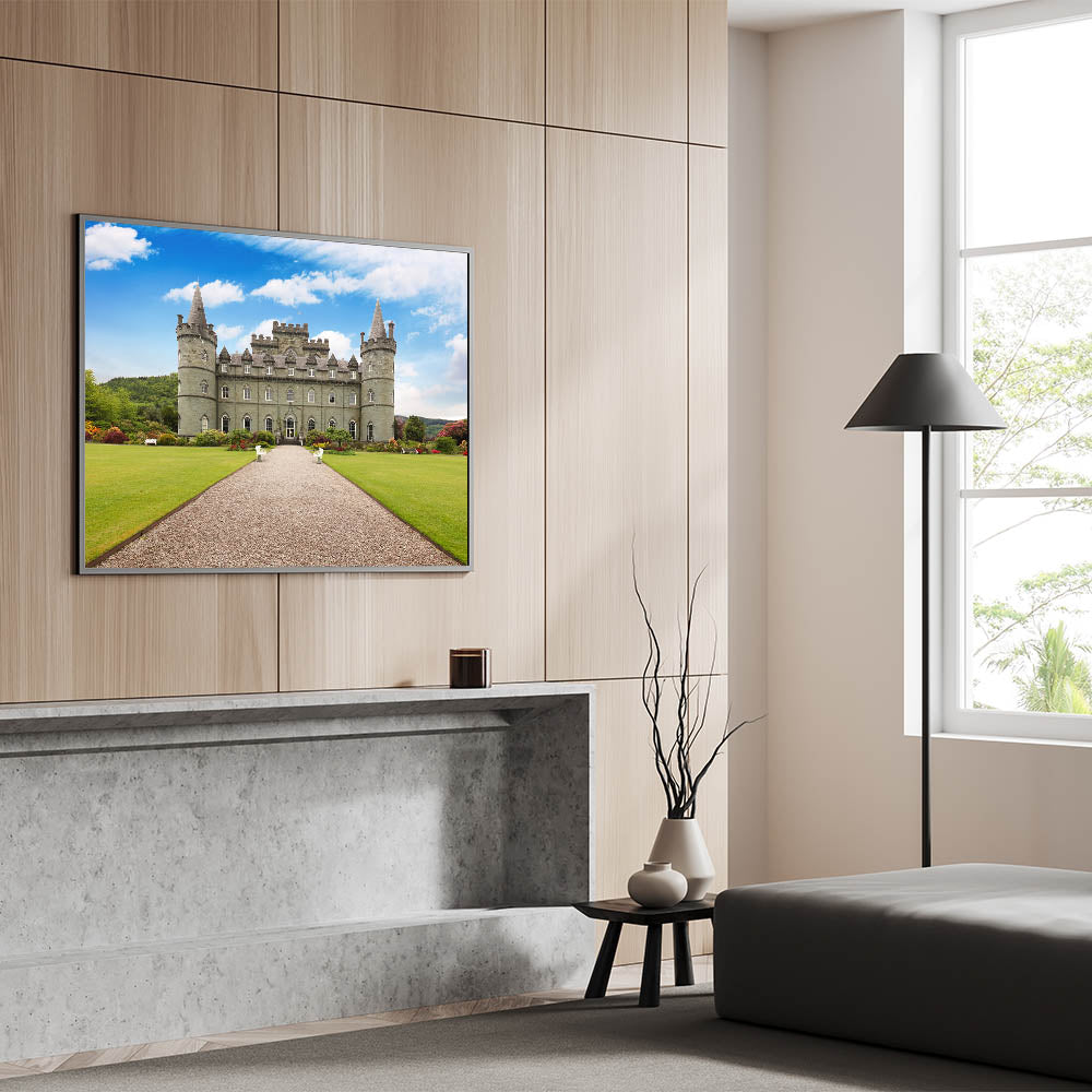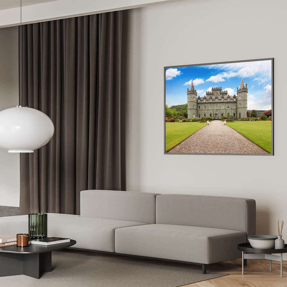 - Vibrant Colors: The clear blue sky, verdant gardens, and detailed castle are captured with exceptional clarity and color accuracy.