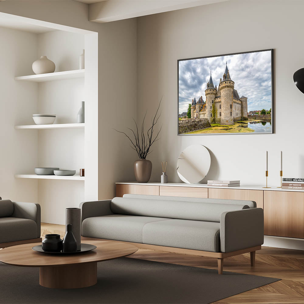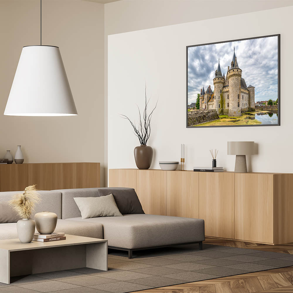 Bring the grandeur of European history into your home with this breathtaking castle wall art. This stunning print captures a magnificent castle set against a dramatic sky, with intricate architectural details and lush surroundings. The photograph showcases the beauty of this historic structure, reflecting both its strength and elegance. Perfect for anyone who appreciates history, architecture, or simply wants to add a statement piece to their decor.